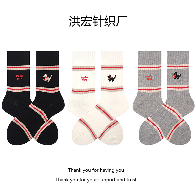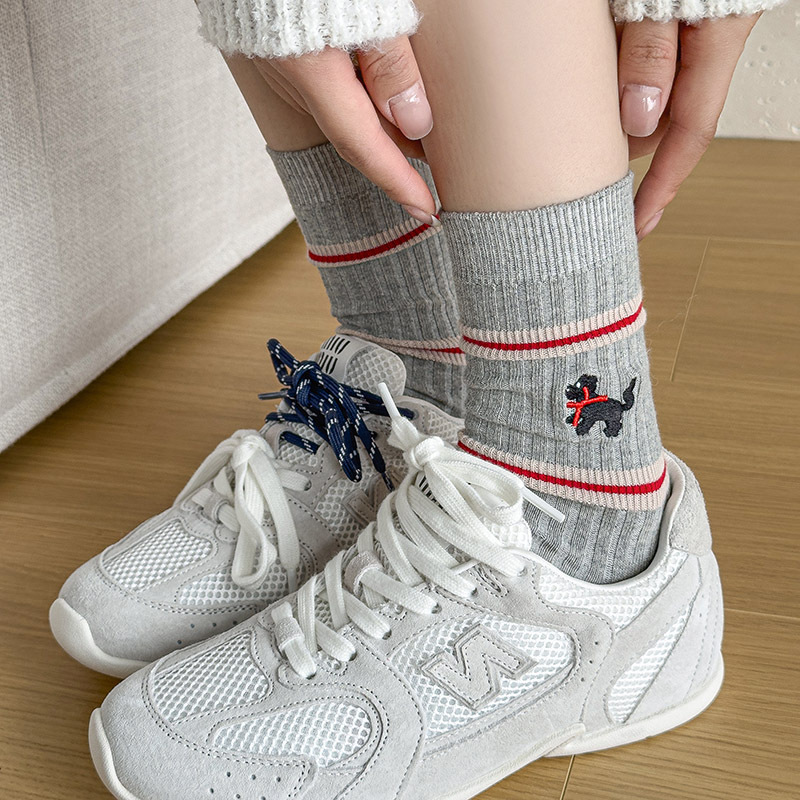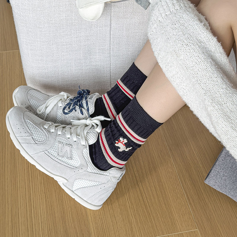 한국식 스트라이프 AB 강아지 양말 여성용 일본식 종아리 양말 인 트렌드 2025 새로운 핫 스타일 아우터웨어 양말스토어 가기