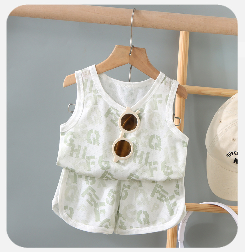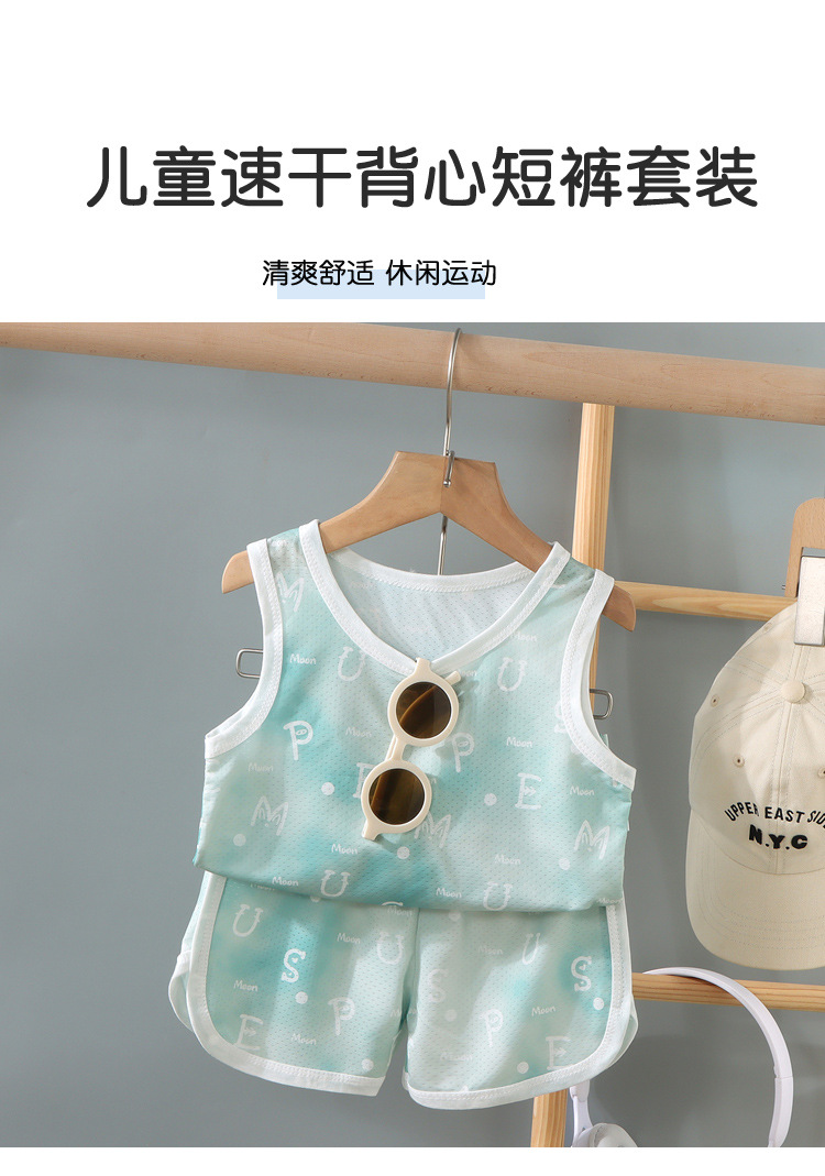 어린이 조끼 세트 여름 얇은 아기 투피스 세트 소년과 소녀 빠른 건조 옷 메쉬 볼 옷 패션 세트스토어 가기