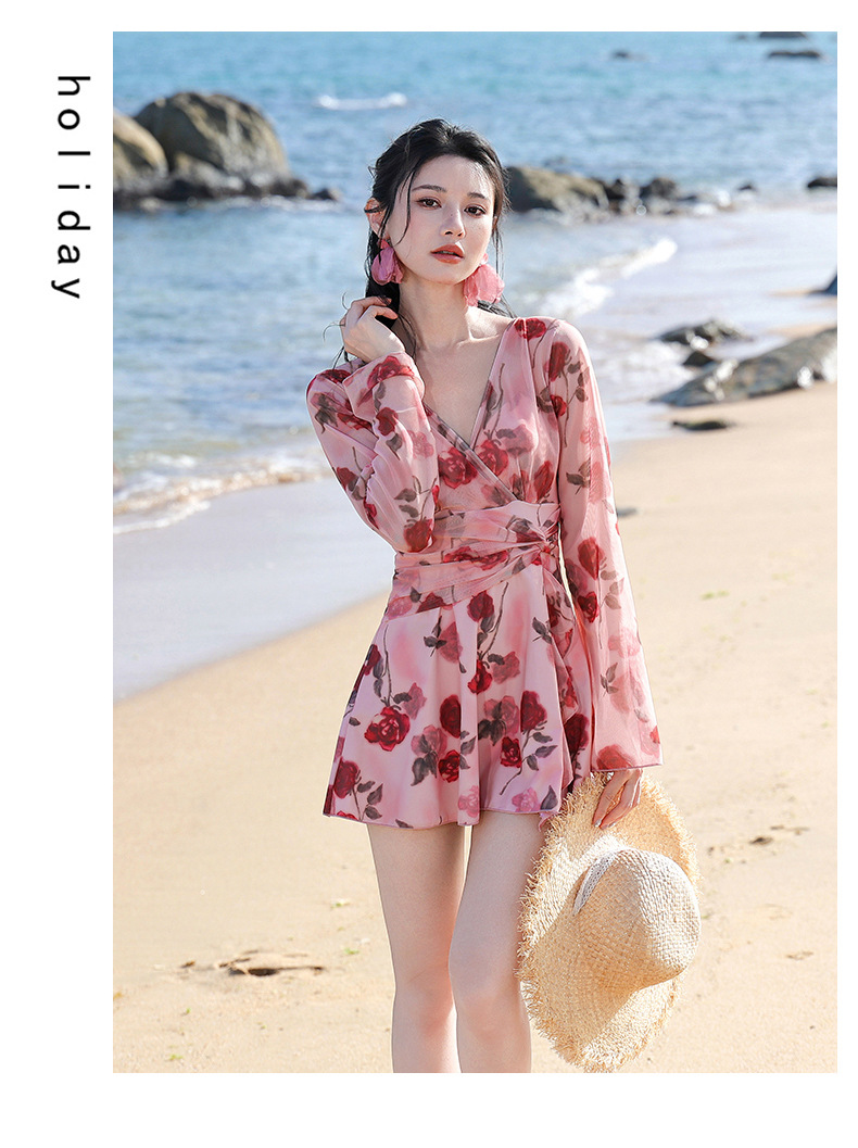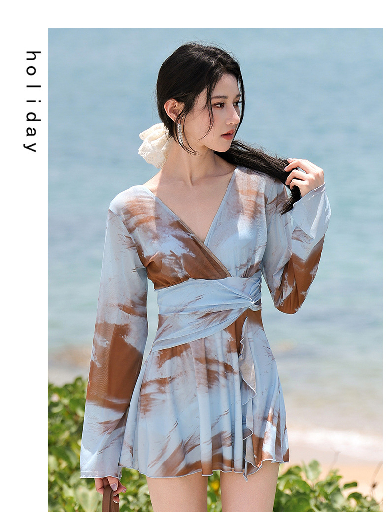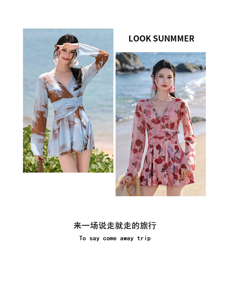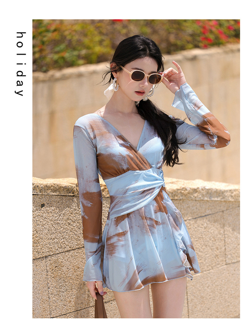 2025 신상 수영복 여성 원피스 스커트 스타일 보수적인 배 커버 슬리밍 섹시한 한국 인스 스타일 온천 수영복