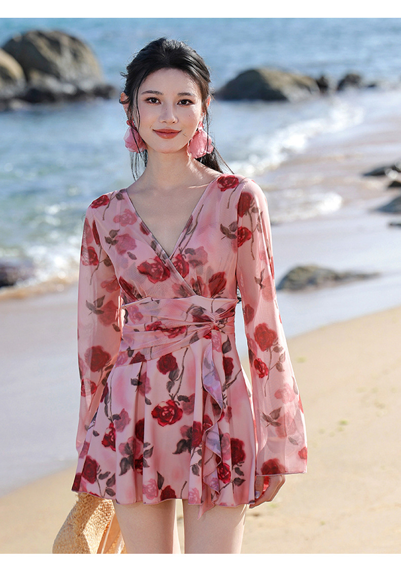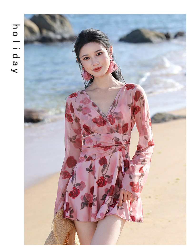 2025 신상 수영복 여성 원피스 스커트 스타일 보수적인 배 커버 슬리밍 섹시한 한국 인스 스타일 온천 수영복스토어 가기
