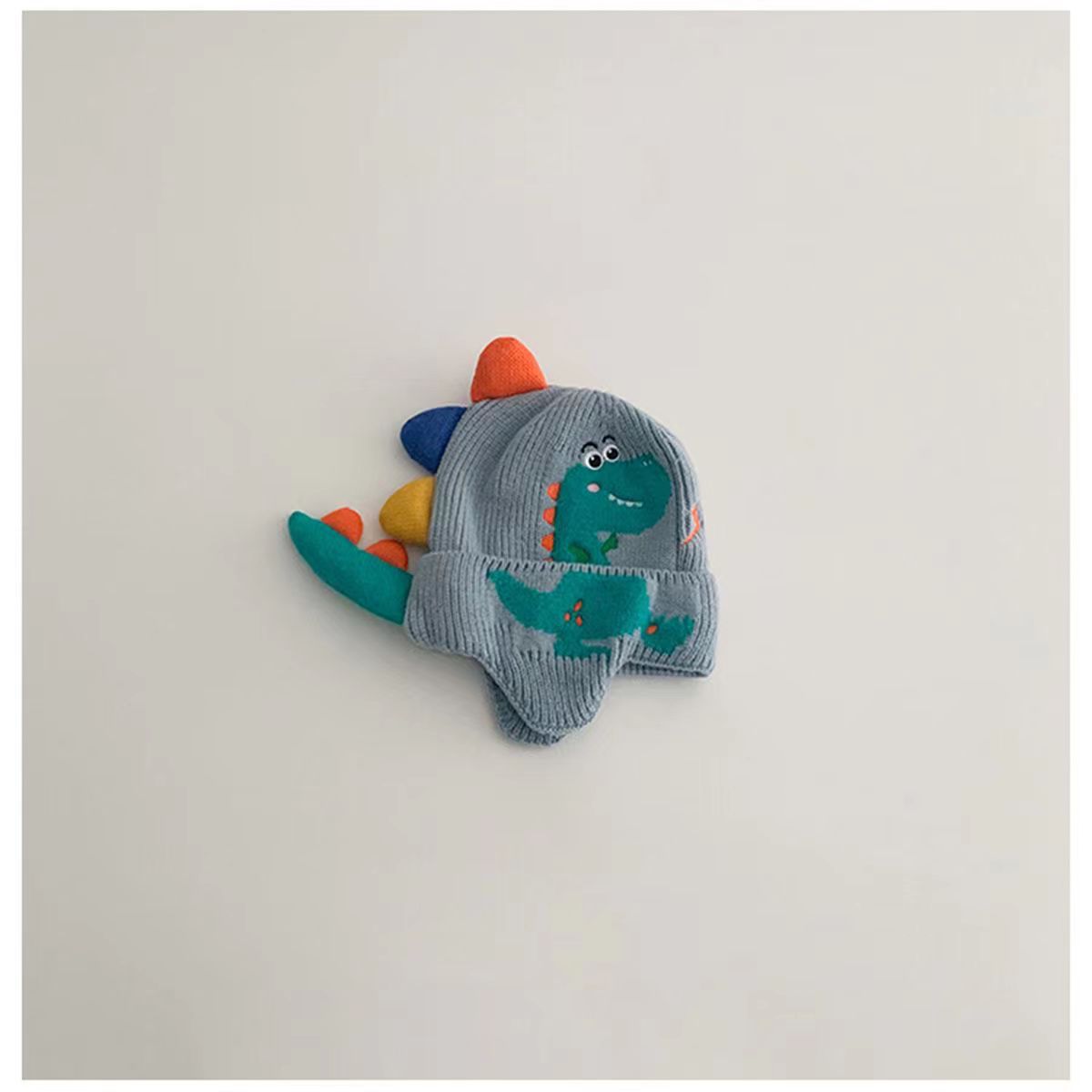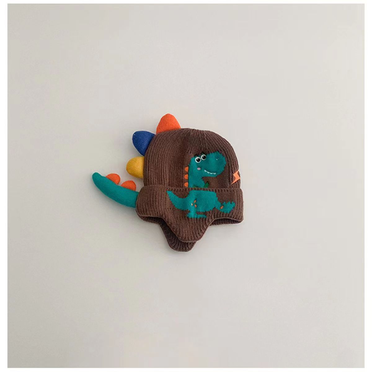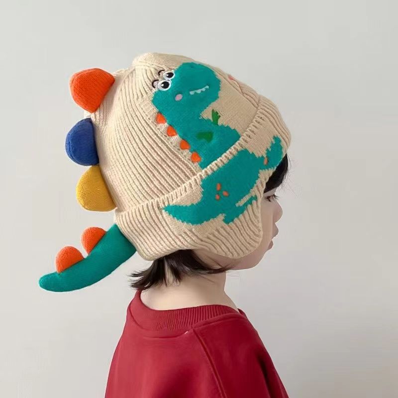 새로운 작은 공룡 만화 귀 보호 모자 아기 소년 니트 모자 가을, 겨울 어린이 방풍 모직 모자 한국어 버전 귀여운스토어 가기