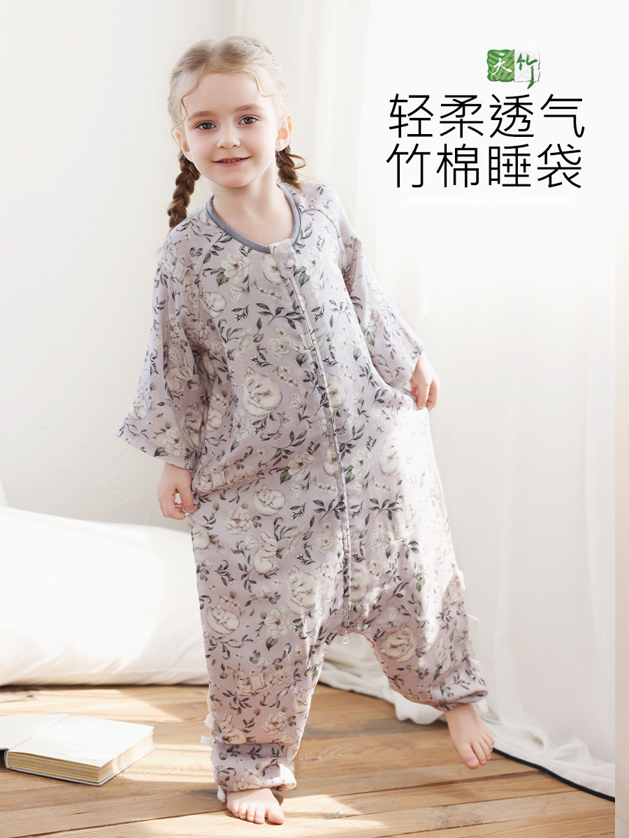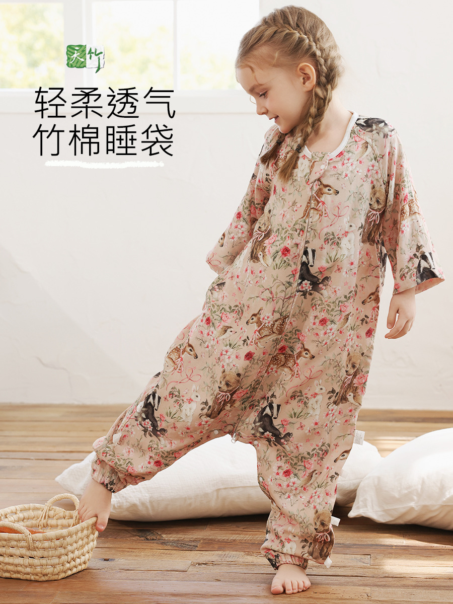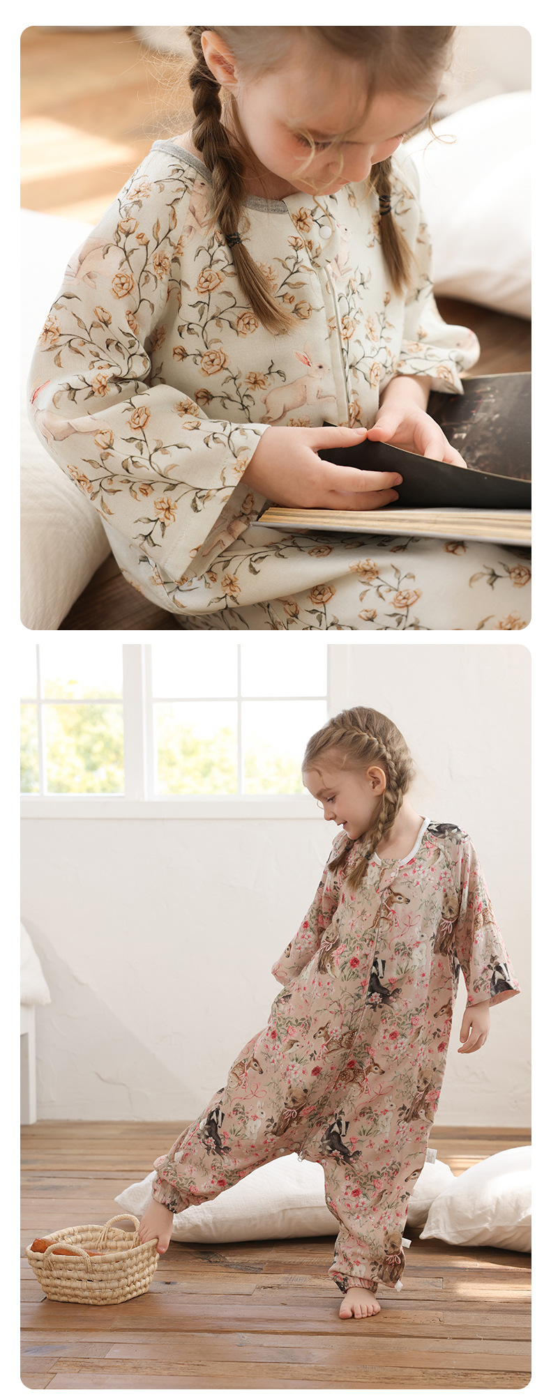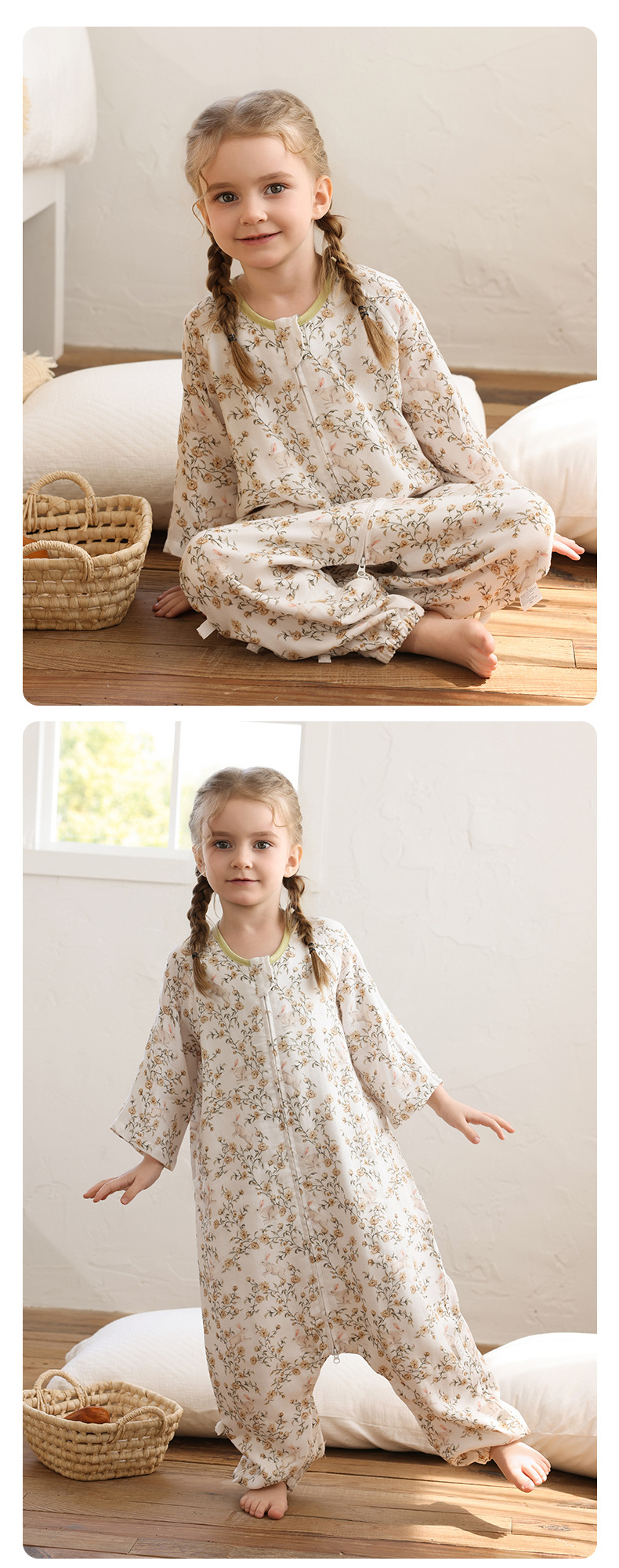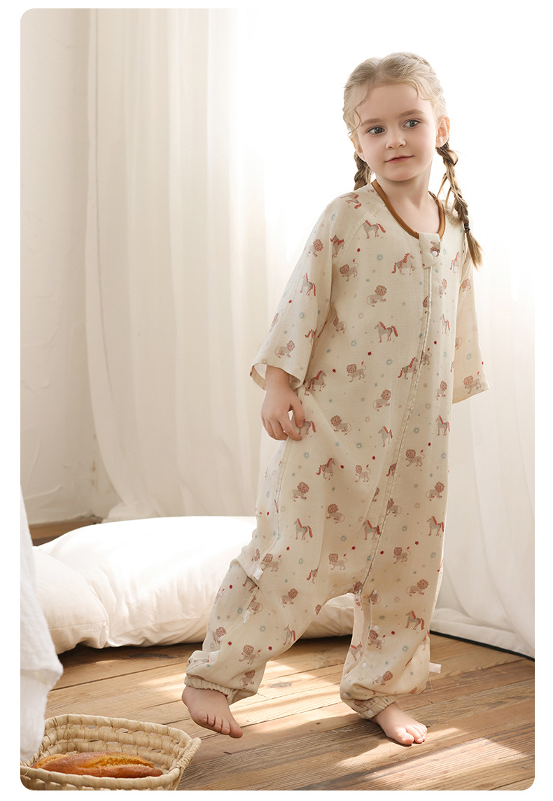 여름 항균 대나무 코튼 거즈 배꼽 보호 7 점 슬리브 프론트 4 세 아이 2 세 유아 아기 에어컨 룸 레그 슬리핑 백
