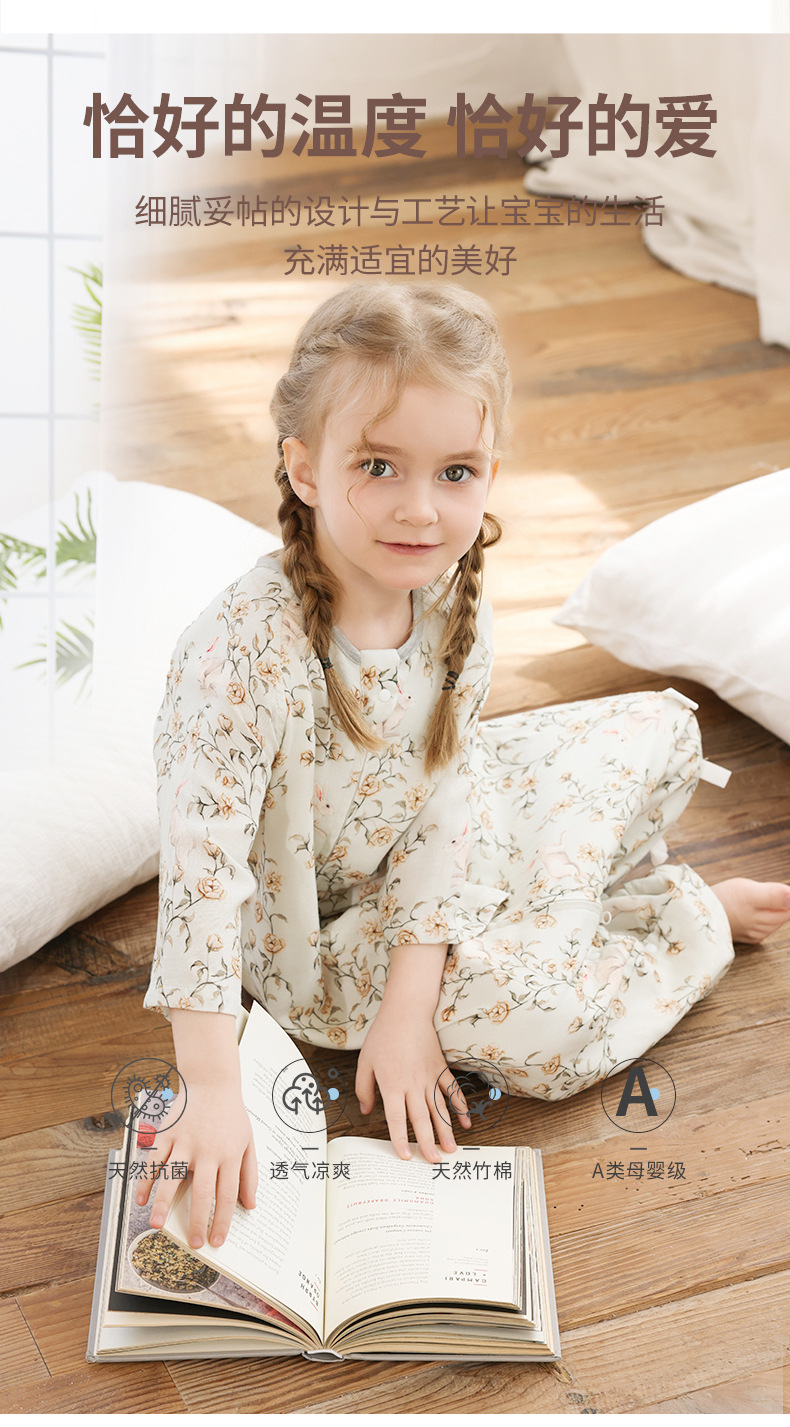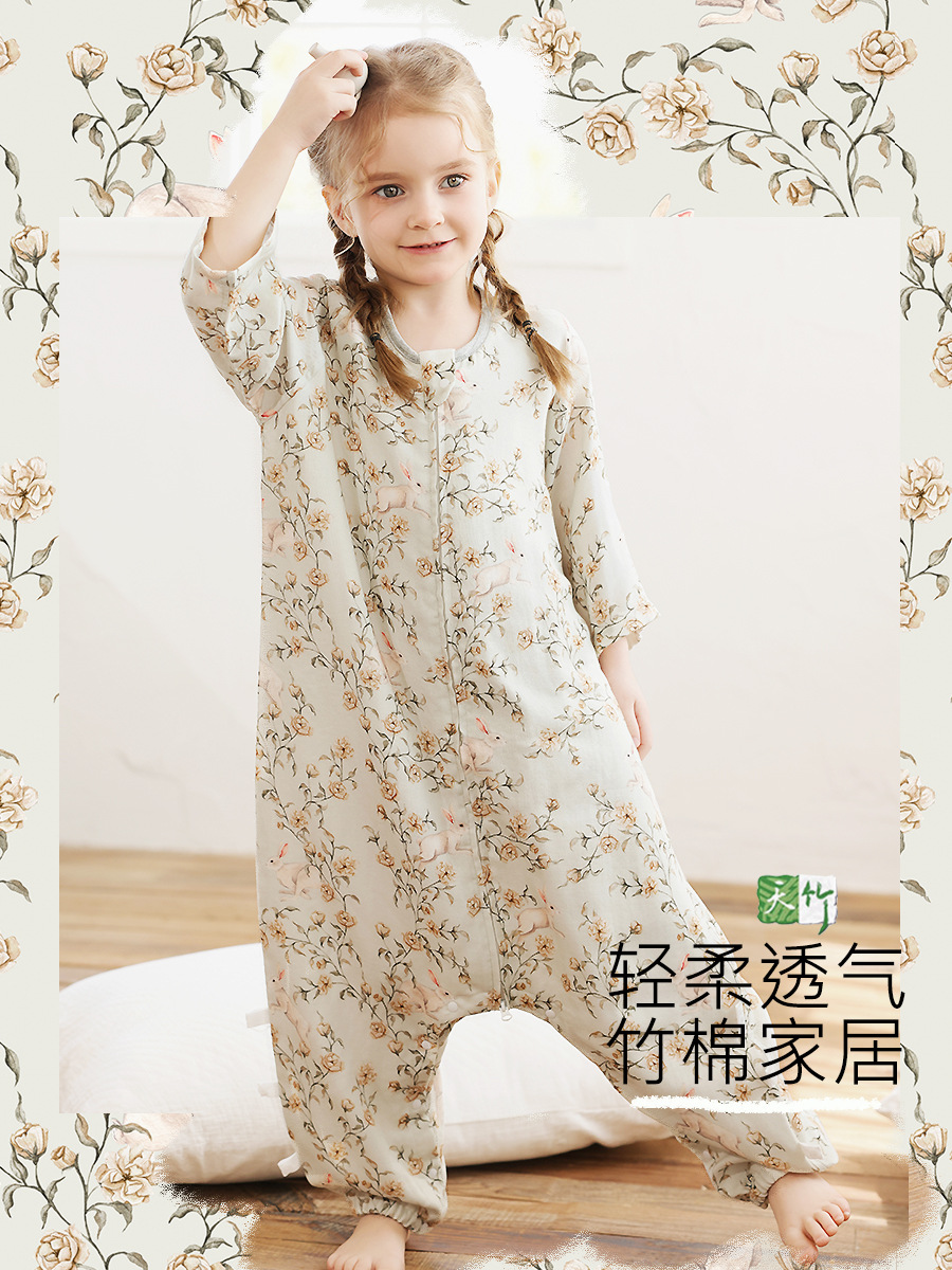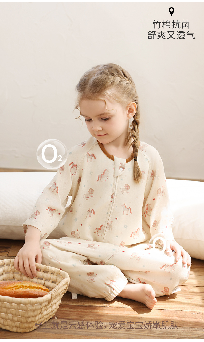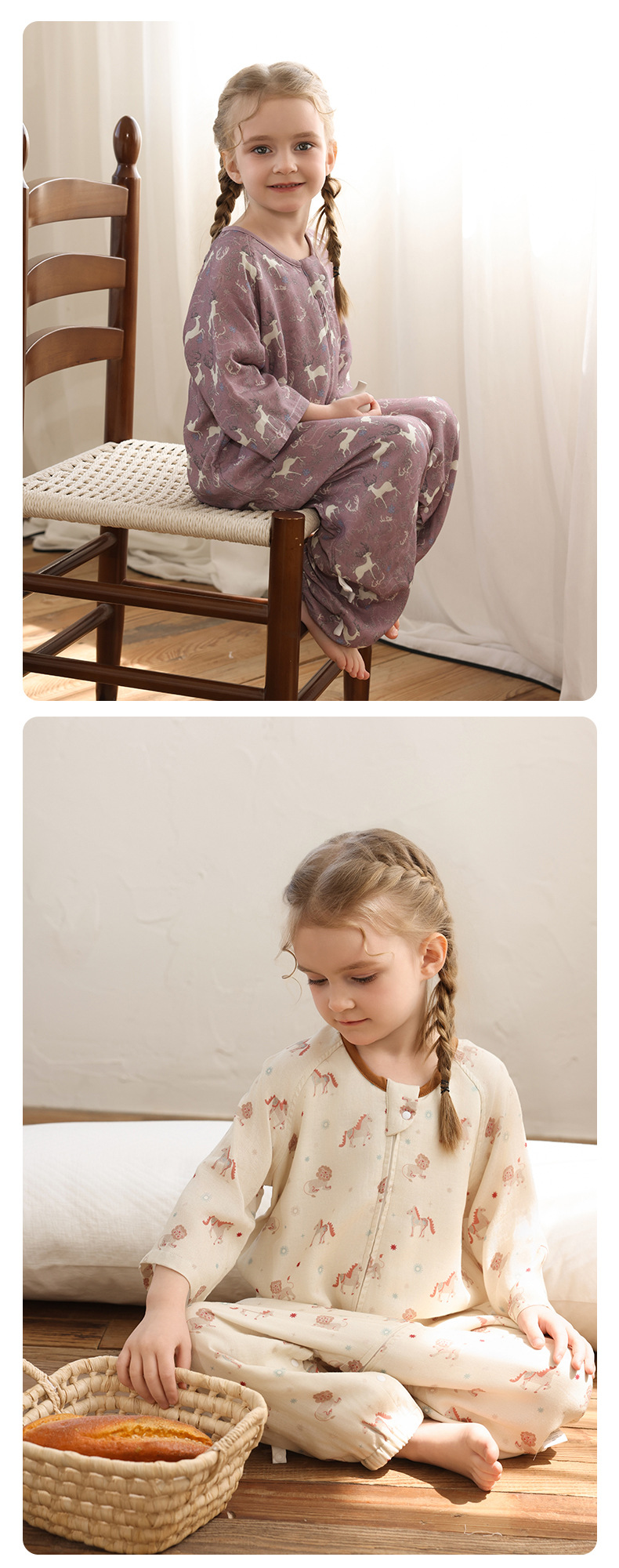 여름 항균 대나무 코튼 거즈 배꼽 보호 7 점 슬리브 프론트 4 세 아이 2 세 유아 아기 에어컨 룸 레그 슬리핑 백