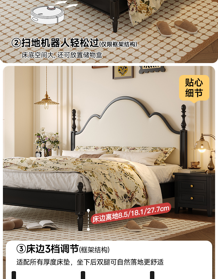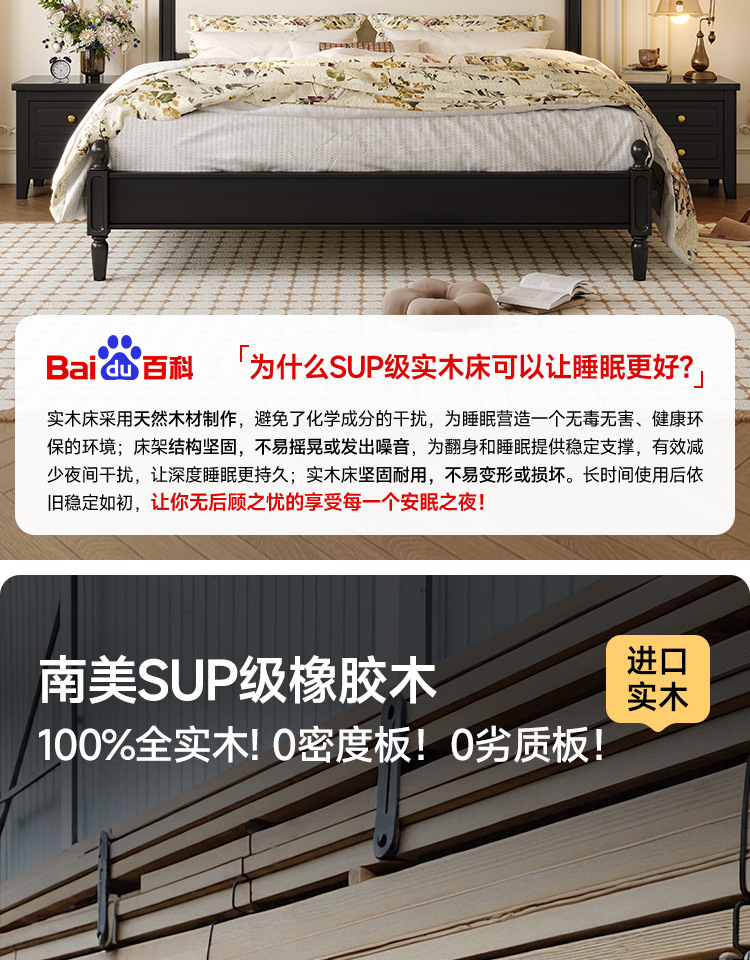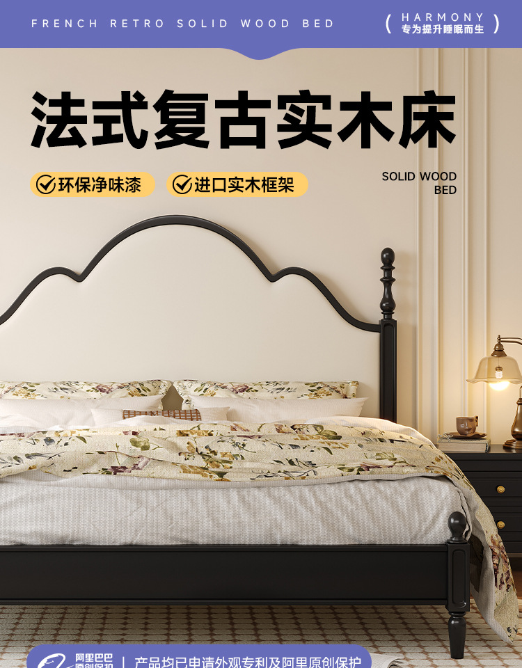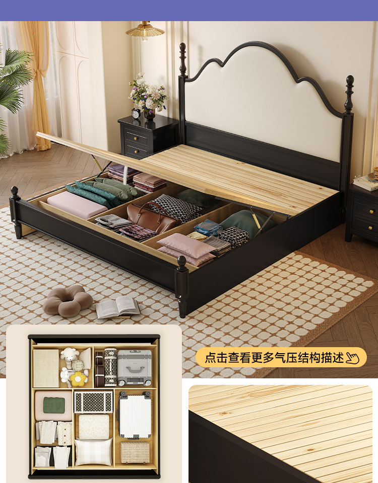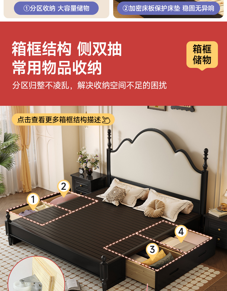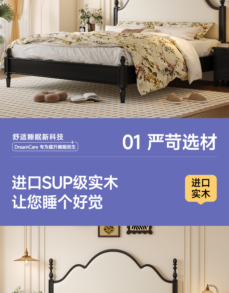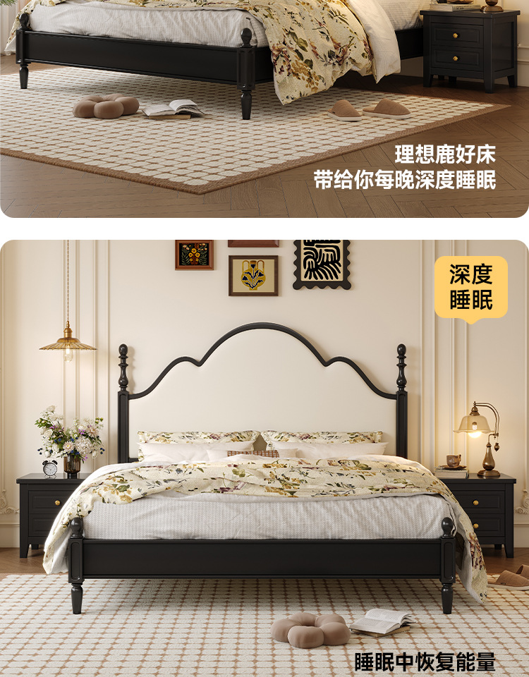 미국 복고풍 전체 단단한 나무 침대 1.8m 더블 1.8m 프랑스 중세 스타일 공주 안나 가구 2025 새로운 스타일