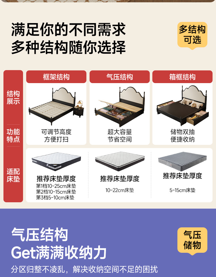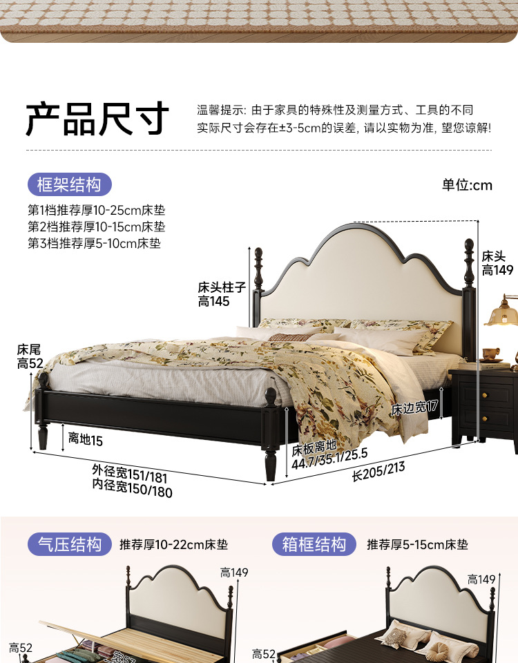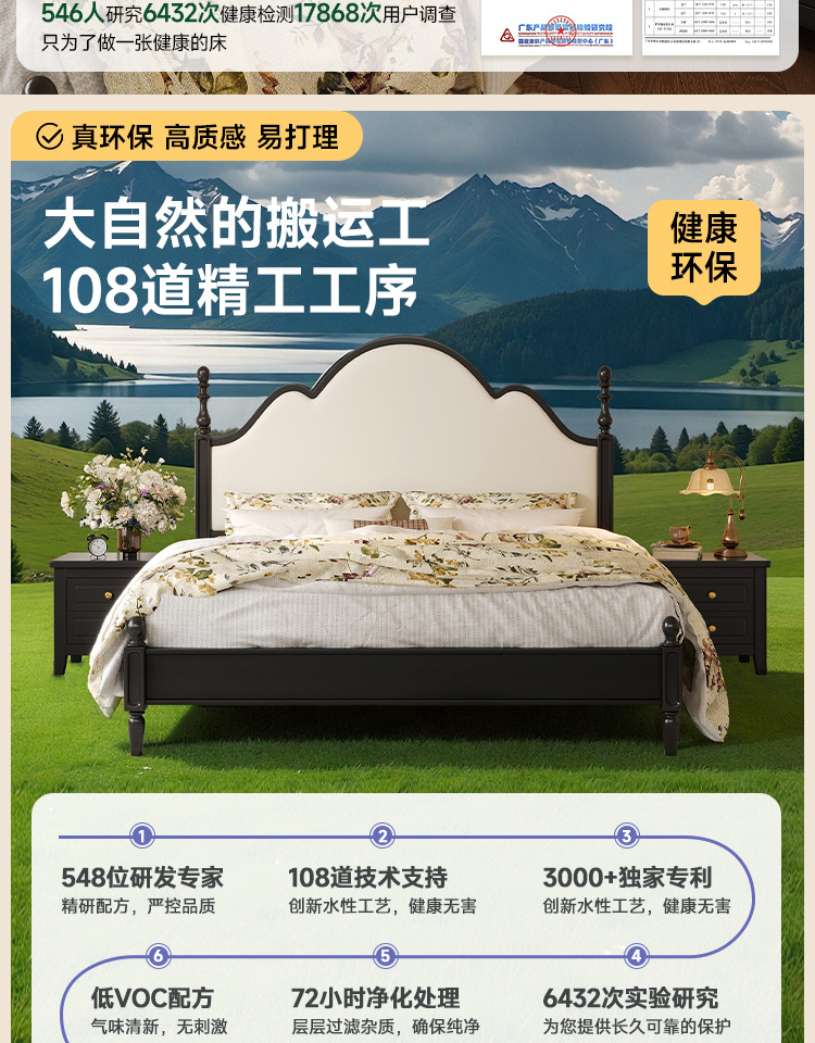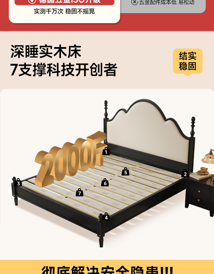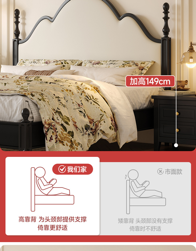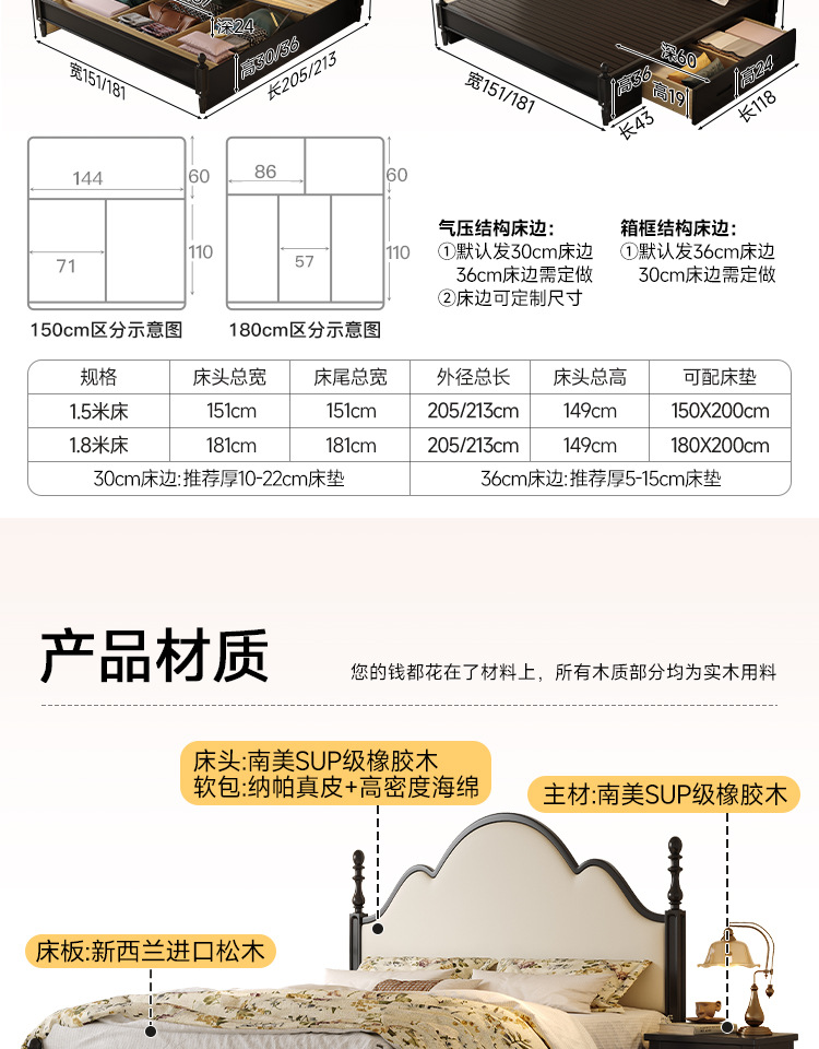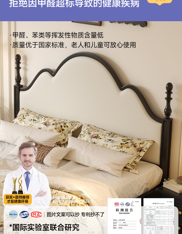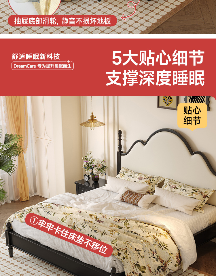 미국 복고풍 전체 단단한 나무 침대 1.8m 더블 1.8m 프랑스 중세 스타일 공주 안나 가구 2025 새로운 스타일
