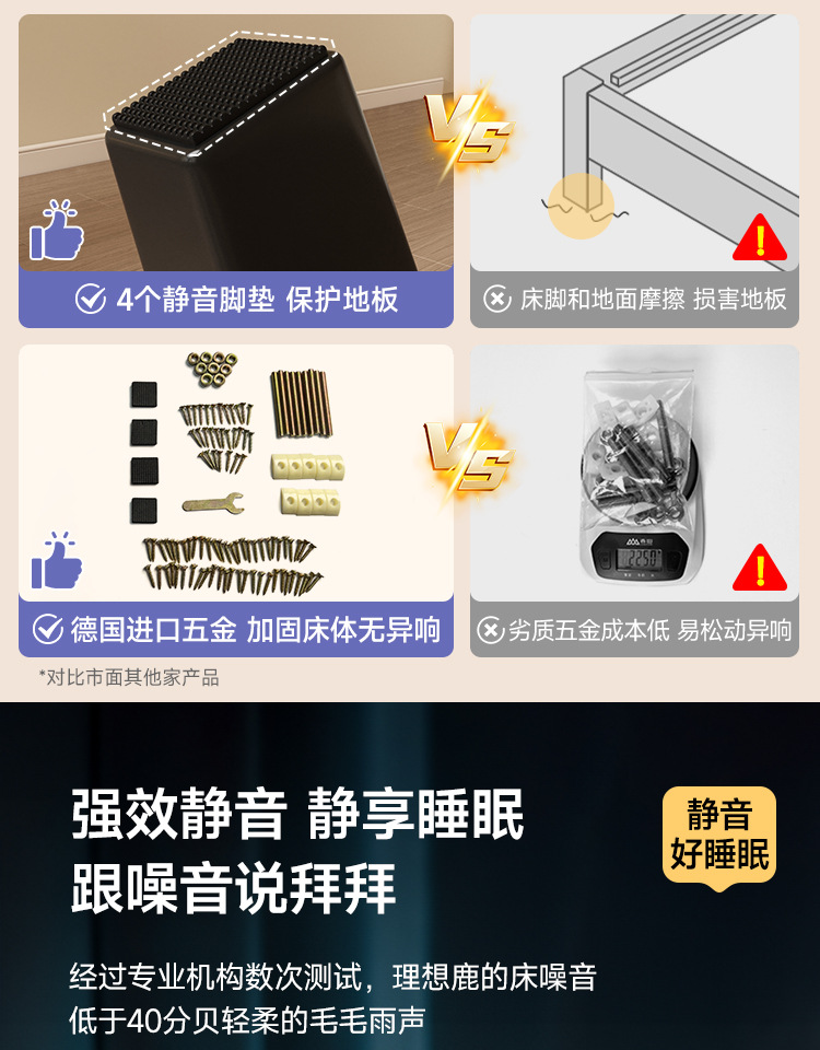 • 싱글 침대 + 무압력 항균 및 진드기 방지 매트리스 + 침대 옆 테이블 * 1
