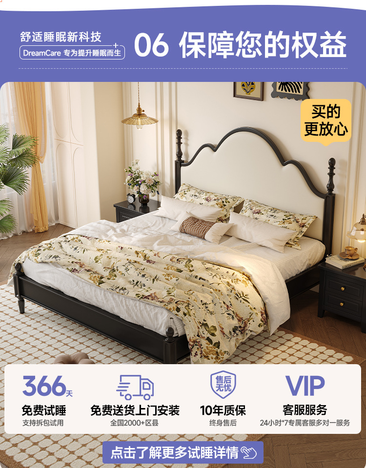 미국 복고풍 전체 단단한 나무 침대 1.8m 더블 1.8m 프랑스 중세 스타일 공주 안나 가구 2025 새로운 스타일스토어 가기