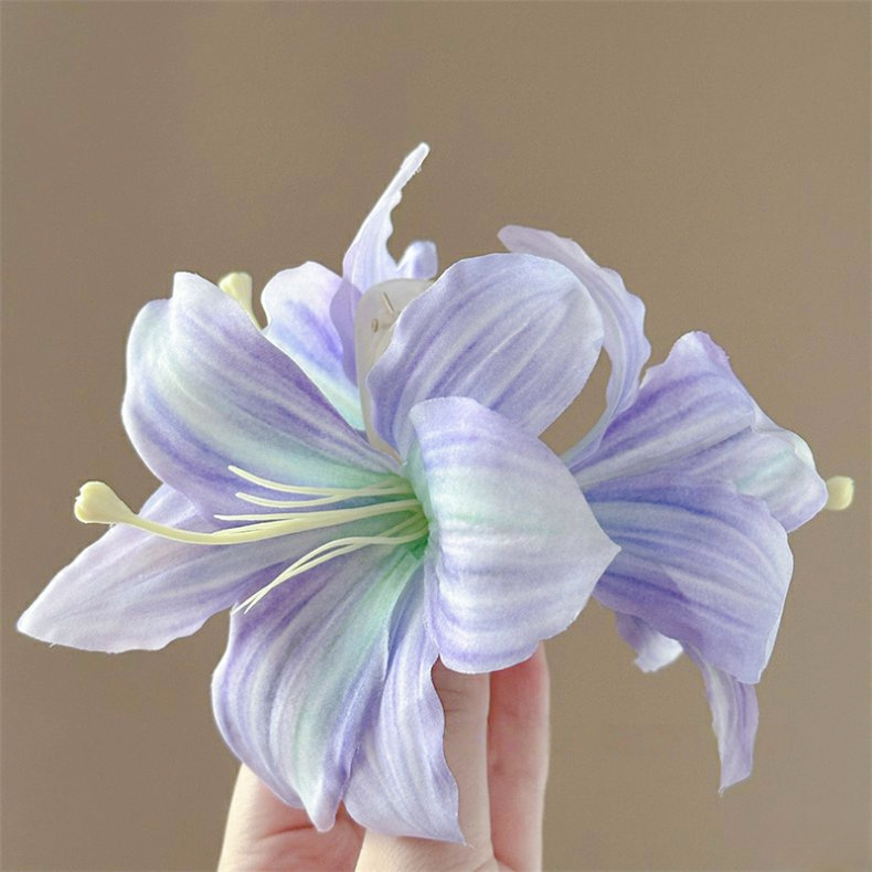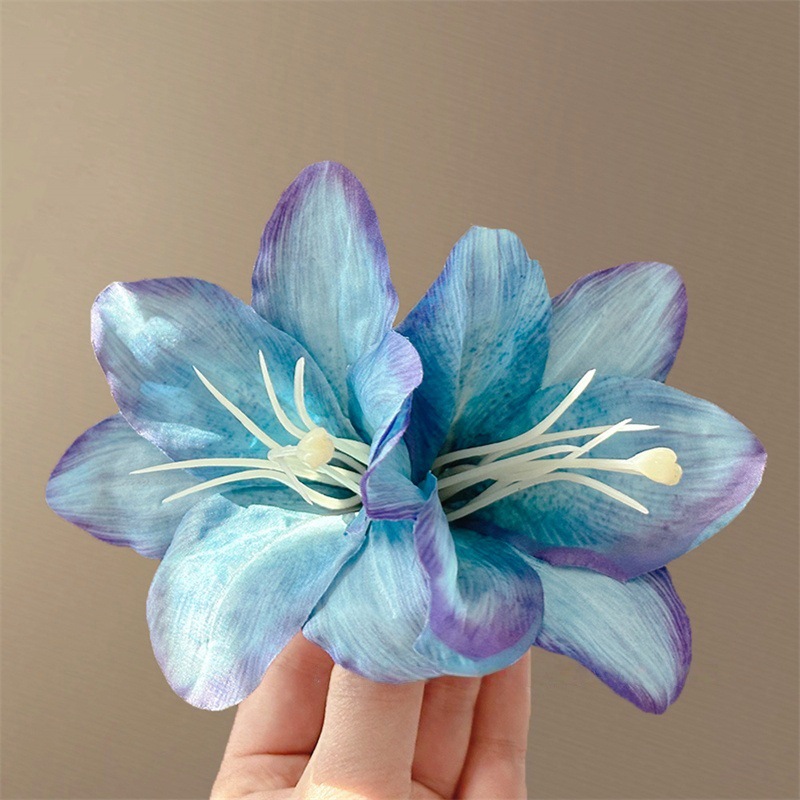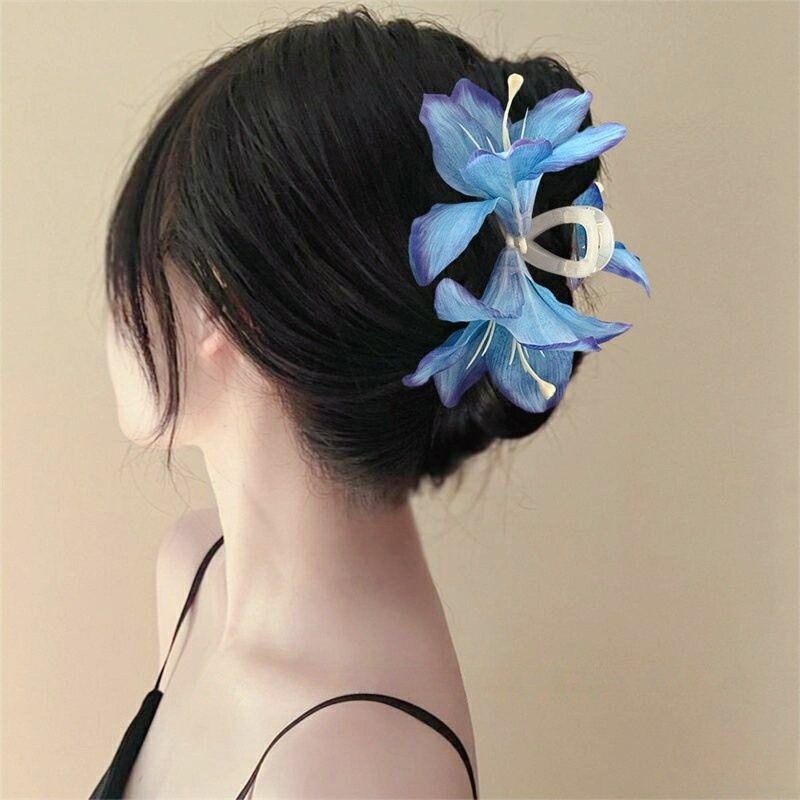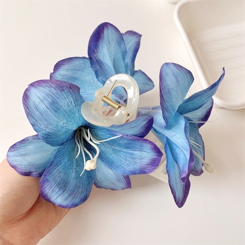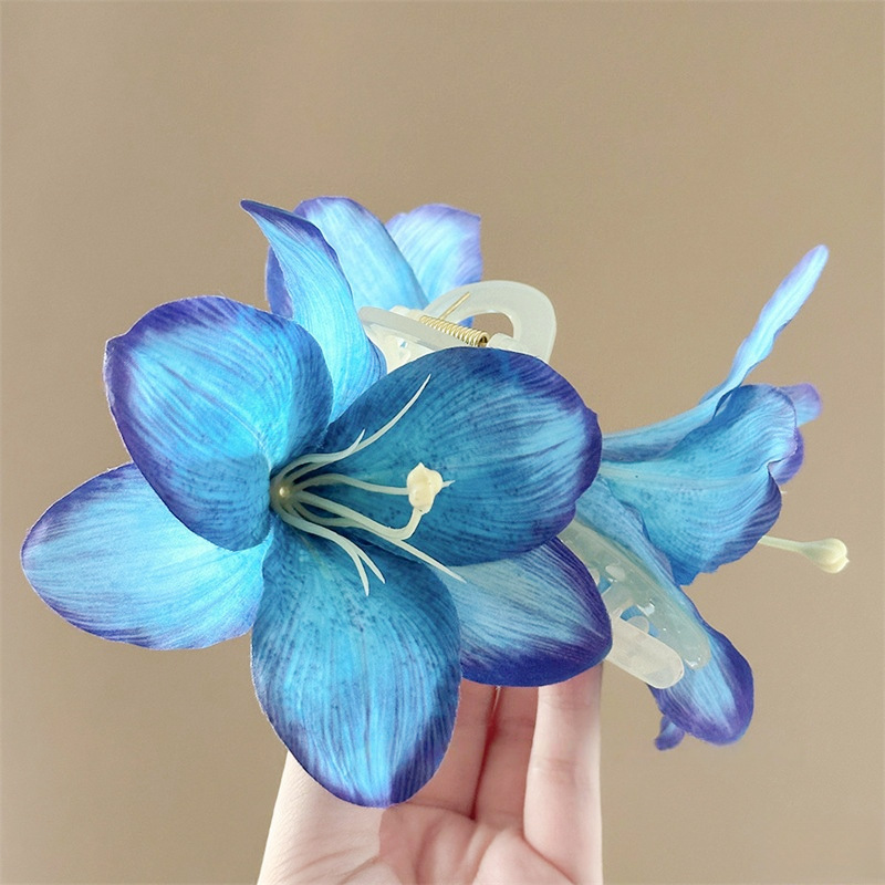 고급스러운 블루 릴리 꽃 집게, 슈퍼 요정의 아름다운 머리핀, 대형 상어 집게, 분위기 있는 머리 집게, 사진 촬영용 헤어 액세서리