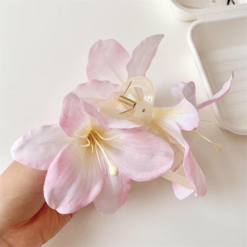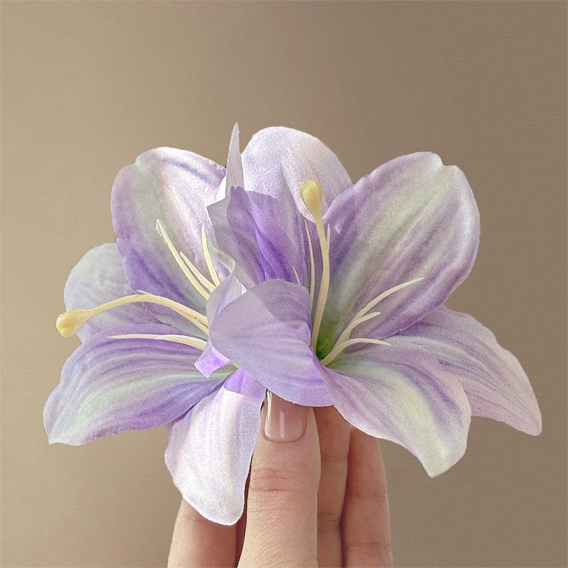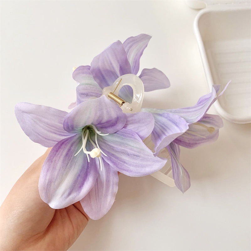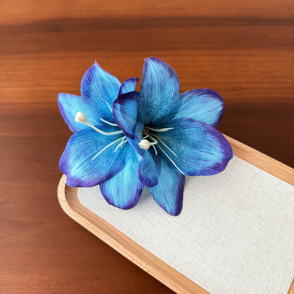 고급스러운 블루 릴리 꽃 집게, 슈퍼 요정의 아름다운 머리핀, 대형 상어 집게, 분위기 있는 머리 집게, 사진 촬영용 헤어 액세서리