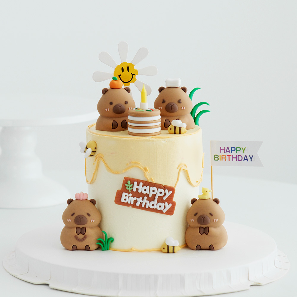 어린이 날 케이크 장식 만화 귀여운 부드러운 고무 카피바라 수족관 물고기 목욕 돌고래 장식품스토어 가기