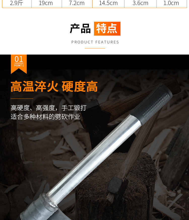 • 모든 강철 스프링 강철 0.65kg은 장작을 쪼개는 데 적합하지 않습니다.