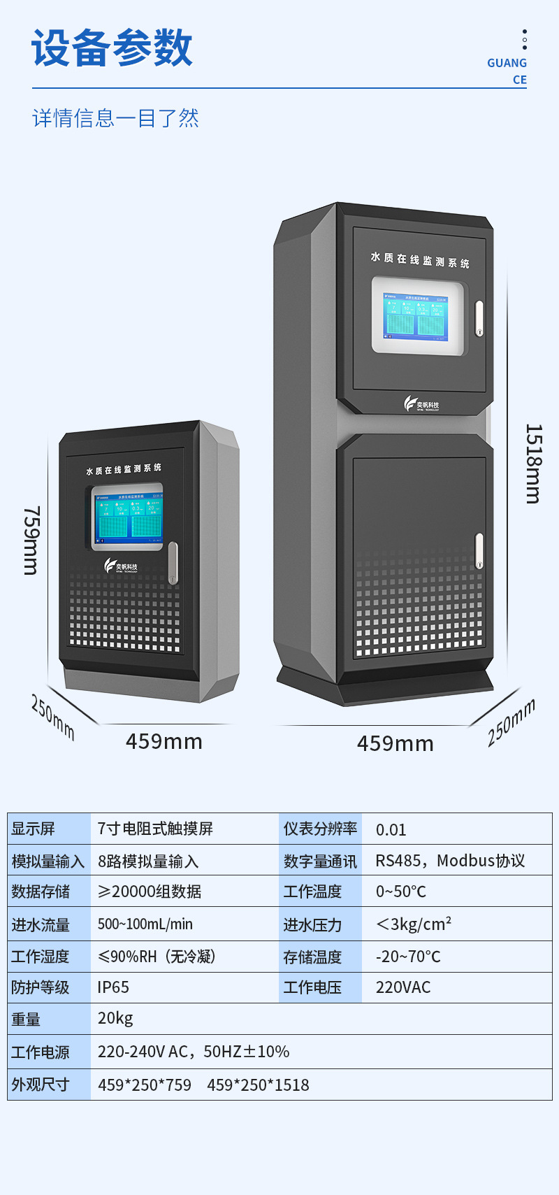 • 7개 매개변수 수질 온라인 모니터링 스테이션 보증금