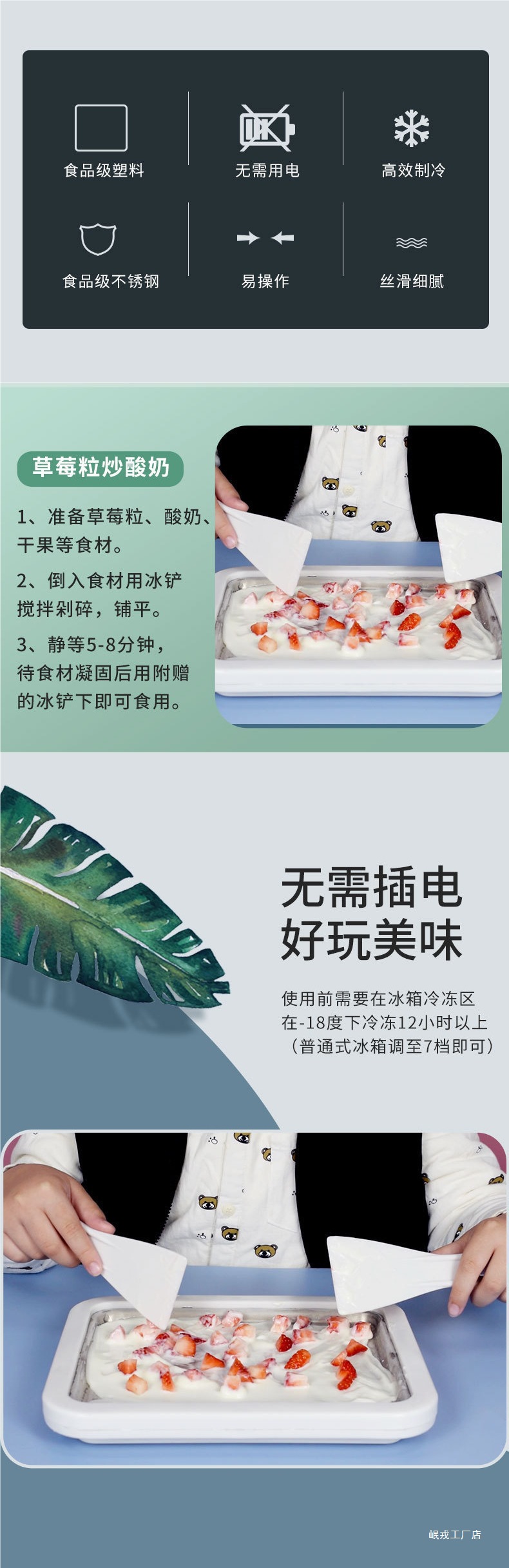 과일 프라이드 아이스 기계 가정용 프라이드 요구르트 플러그인 프리 소형 모래 얼음 기계 어린이 DIY 아이스크림 아이스크림 고가치스토어 가기