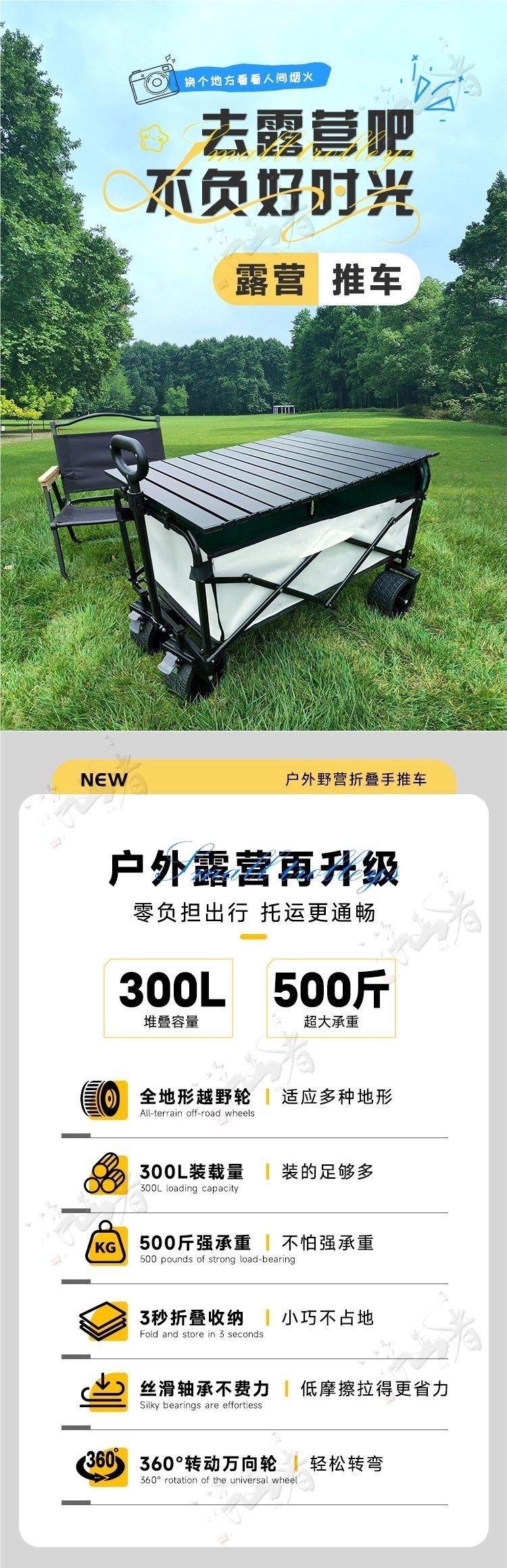 캠핑 카트 접이식 야외 핸드 푸시 피크닉 카트 휴대용 캠프 트레일러 트롤리 다기능 캠핑 스톨 카트스토어 가기