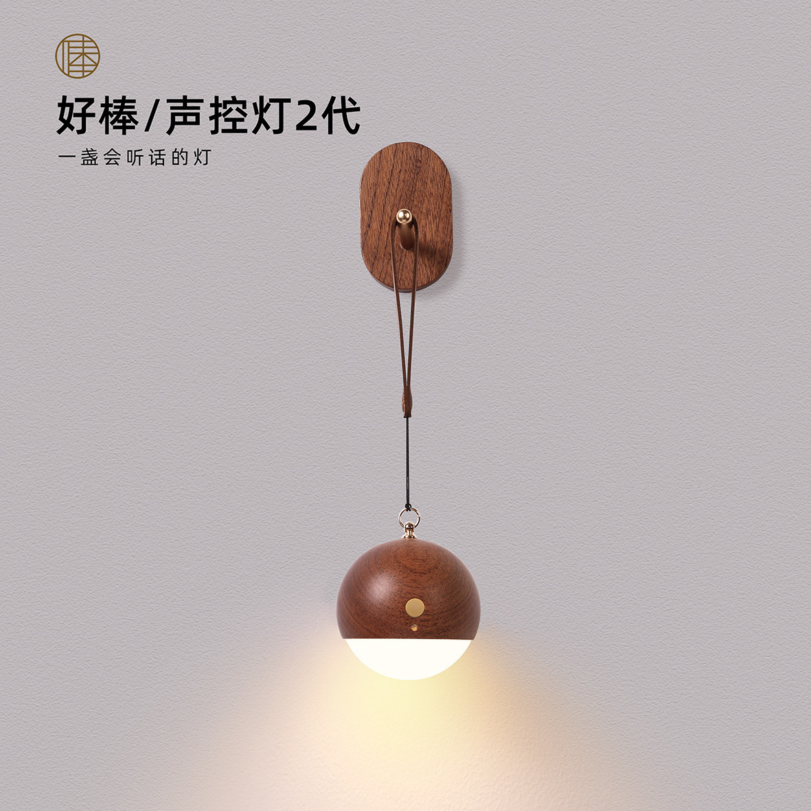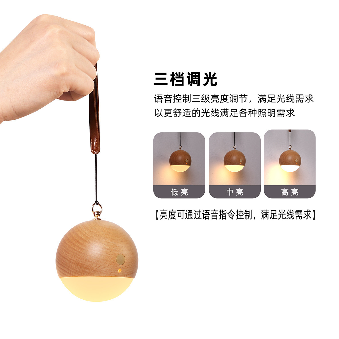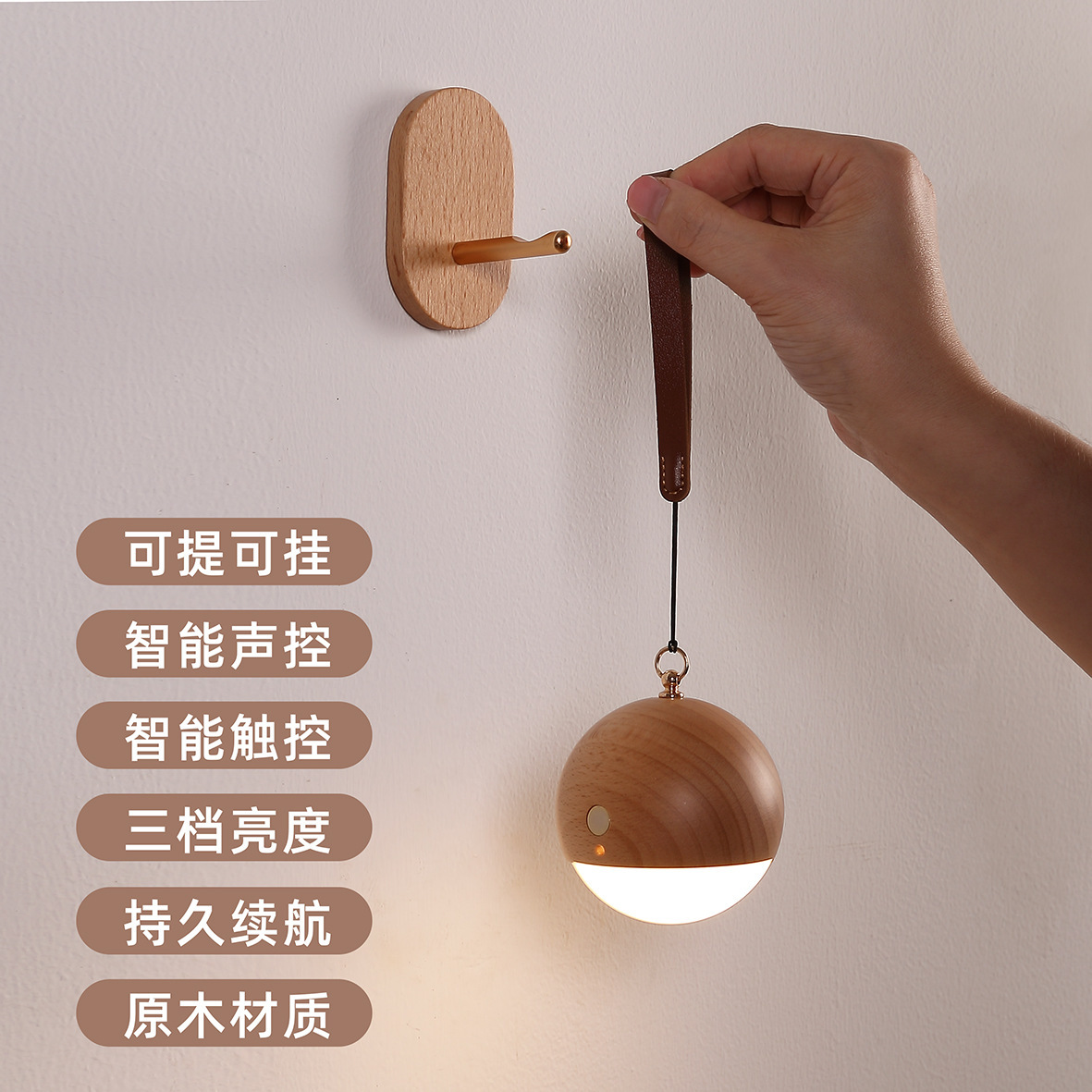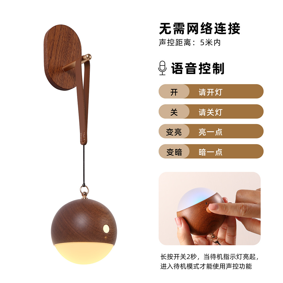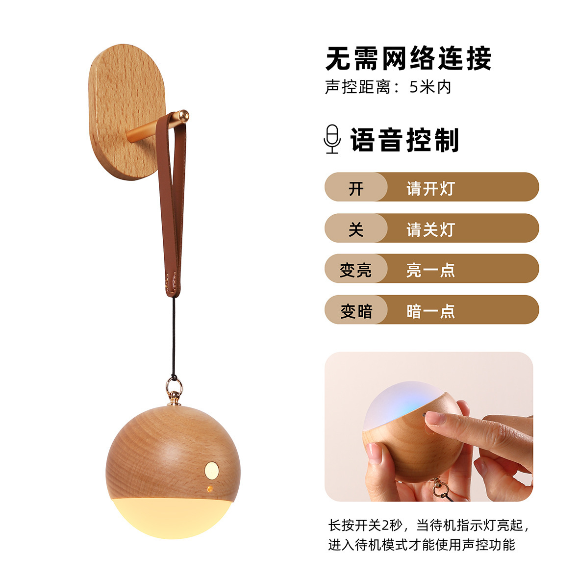 큰 단단한 나무 지능형 음성 제어 램프 휴대용 램프 USB 충전 야간 조명 벽 램프 침대 옆 램프 벽 교수형 배선 무료 교수형스토어 가기