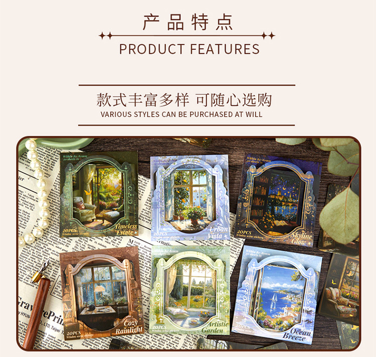 가벼운 따기 애완 동물 스티커 가방 그림 창 시리즈 유럽식 기본 콜라주 장식 복고풍 신선한 스티커 손 계정 6