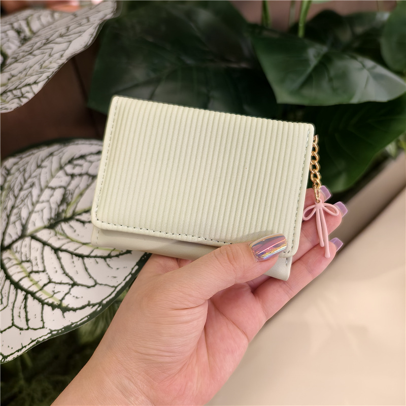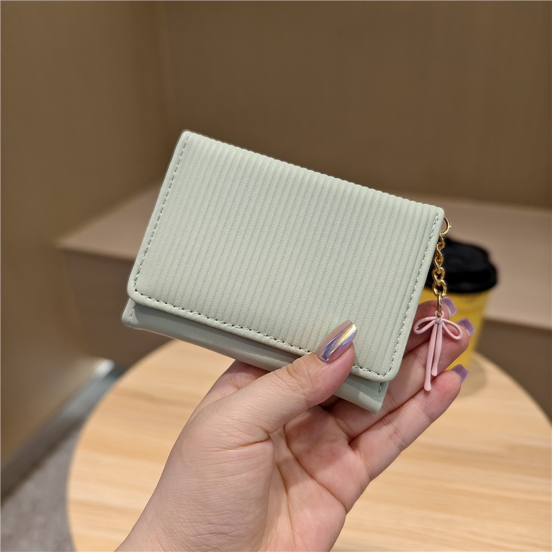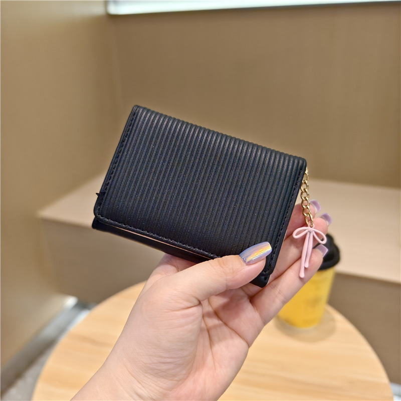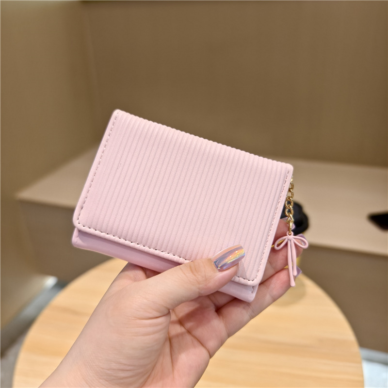 Daini 한국 스타일 신선하고 귀여운 수직 스트라이프 Bow Chandel 여성의 3 배 지갑 짧은 Instagram 스타일 트렌디 지갑
