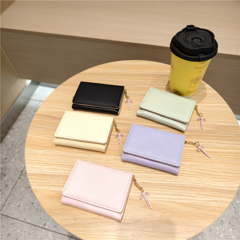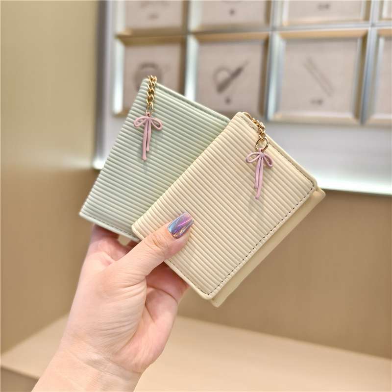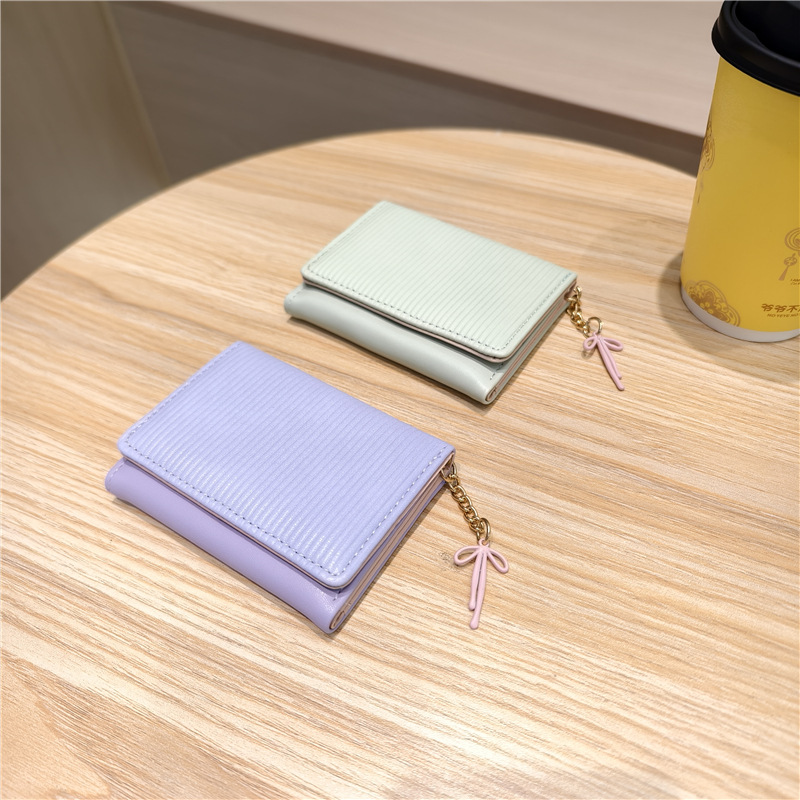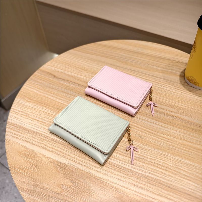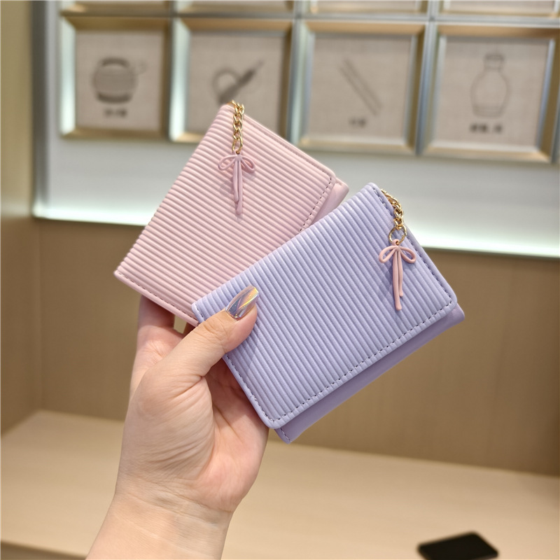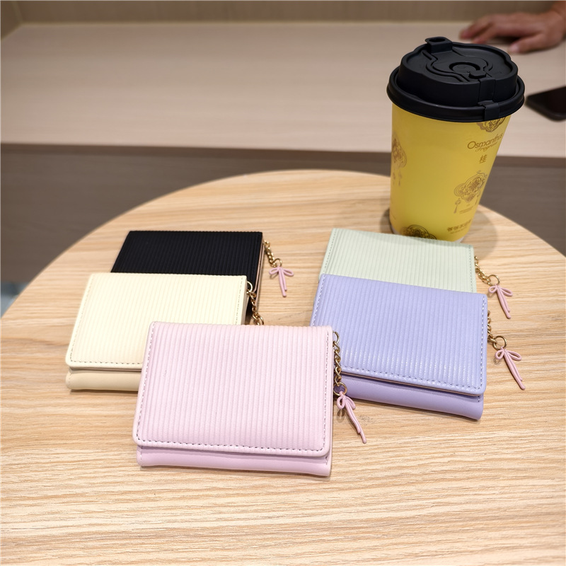 Daini 한국 스타일 신선하고 귀여운 수직 스트라이프 Bow Chandel 여성의 3 배 지갑 짧은 Instagram 스타일 트렌디 지갑스토어 가기