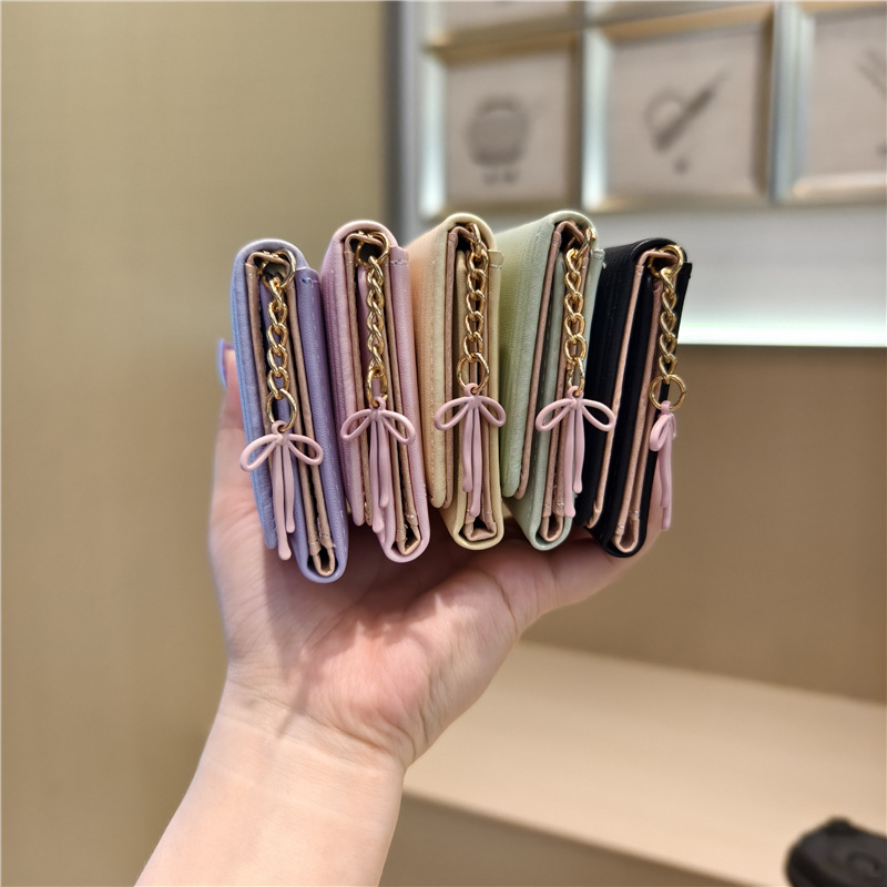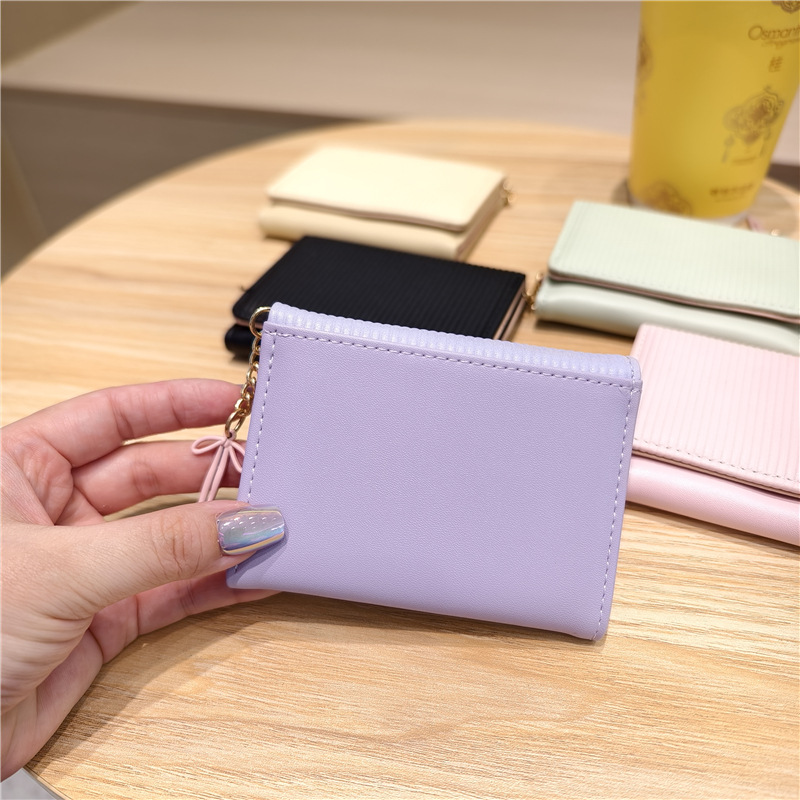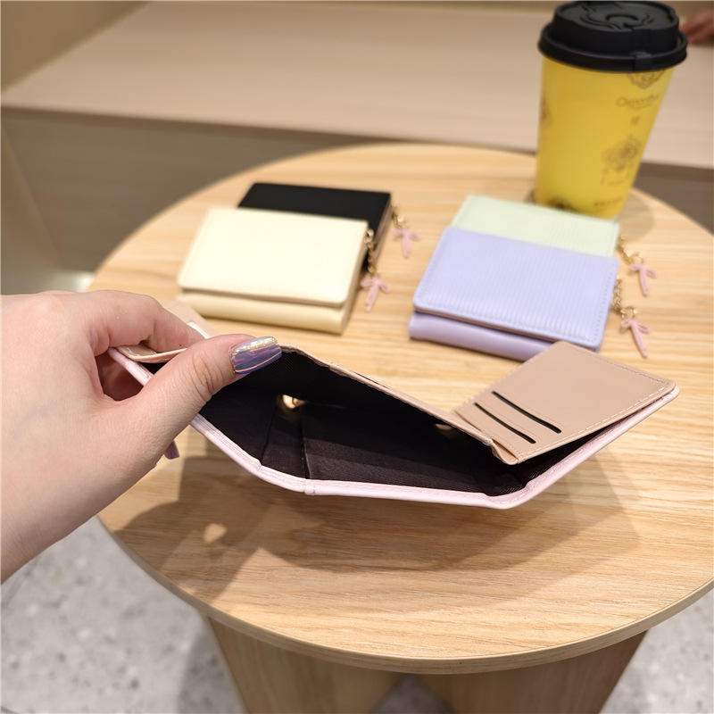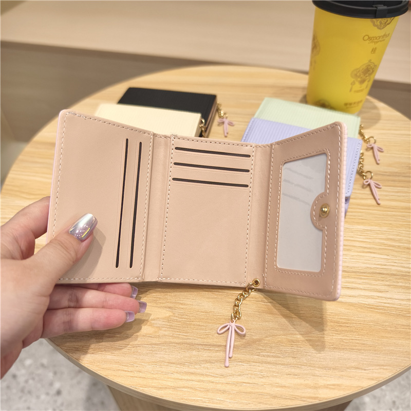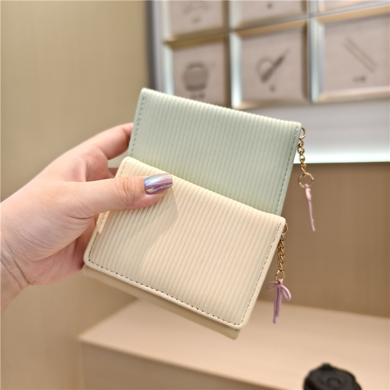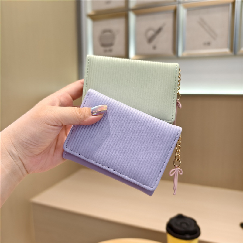 Daini 한국 스타일 신선하고 귀여운 수직 스트라이프 Bow Chandel 여성의 3 배 지갑 짧은 Instagram 스타일 트렌디 지갑스토어 가기