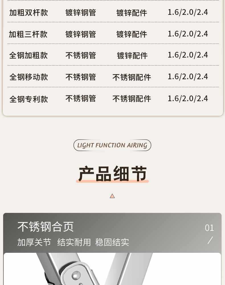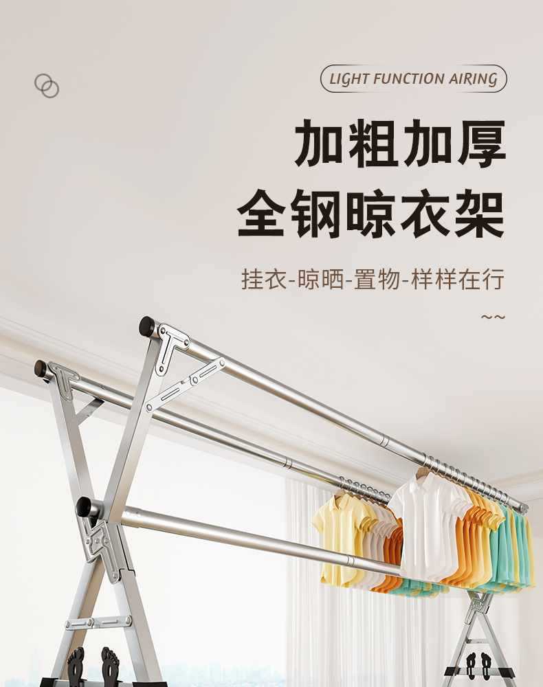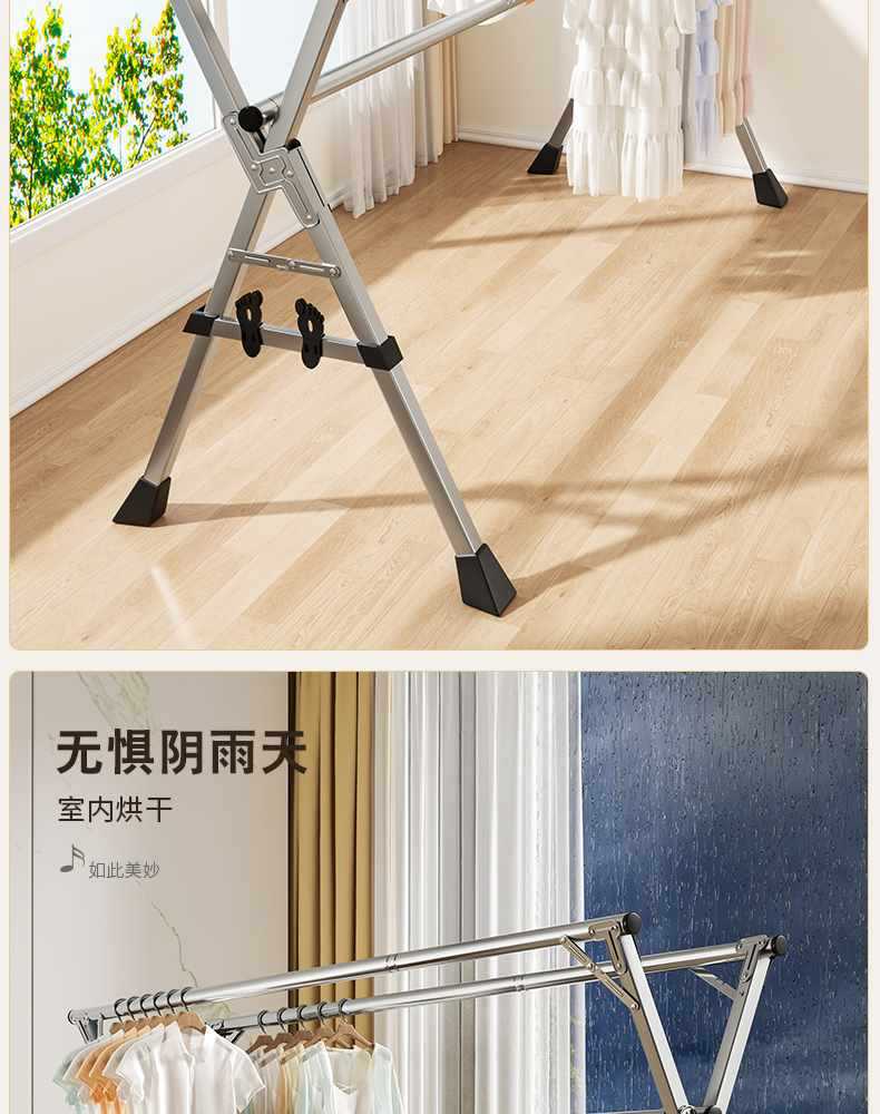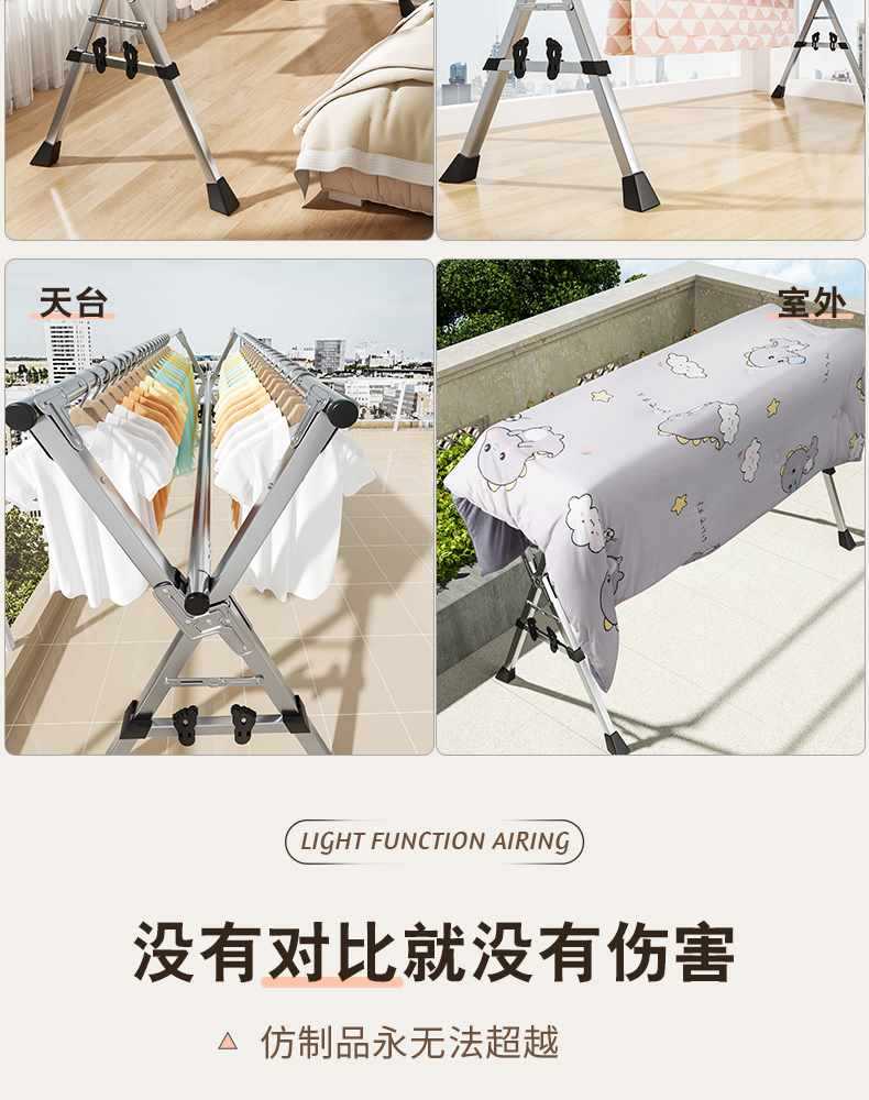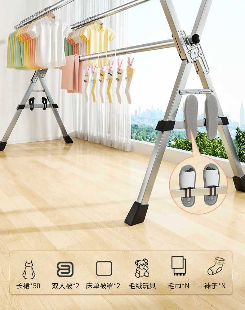 접이식 옷 건조대 바닥 실내 홈 발코니 침실 스테인레스 스틸 야외 접이식 막대형 이불 건조대 Zhaozhili스토어 가기