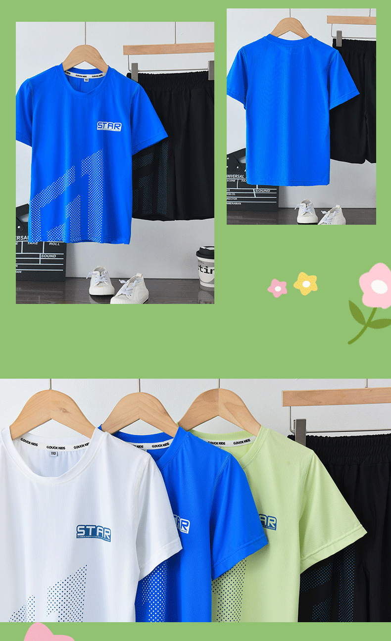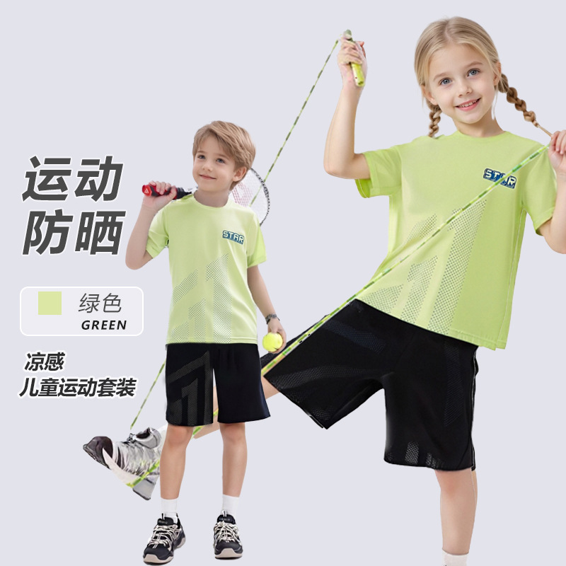 2025 새로운 아동복 어린이 빠른 건조 세트 여름 소년 운동복 소녀 선 스크린 투피스 학생 옷스토어 가기