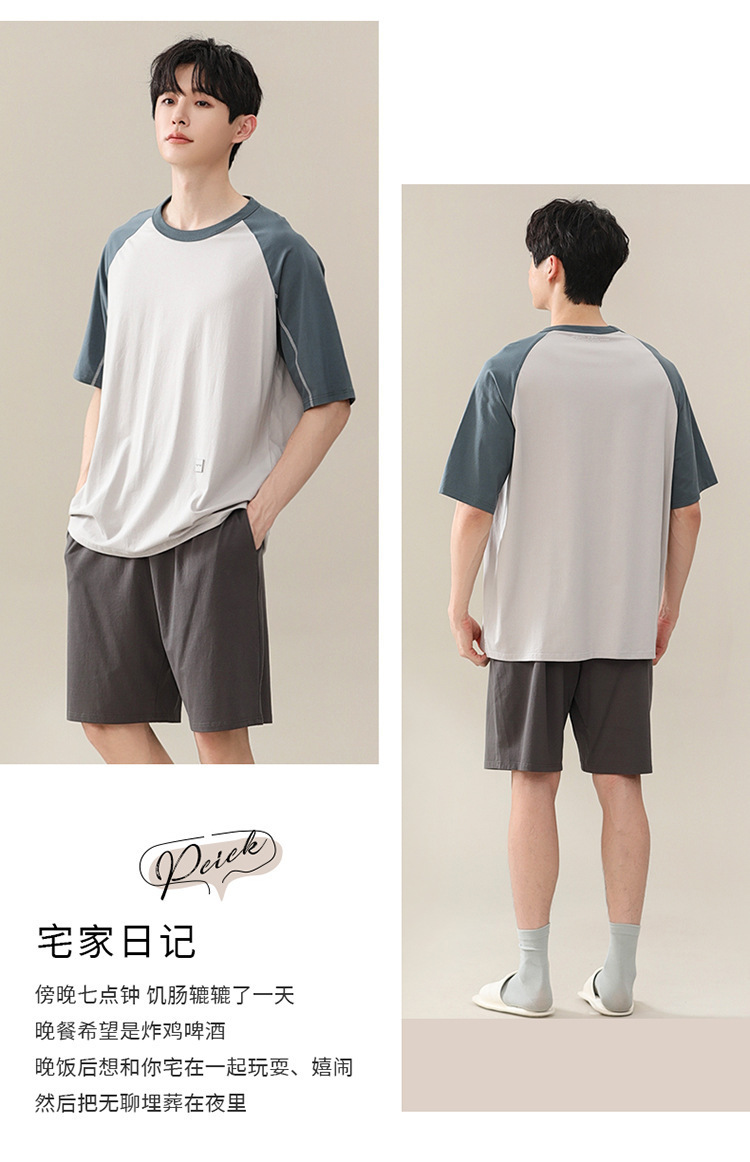 모달 남성 잠옷 여름 반팔 반바지 청소년 얇은 여름 시원한 느낌은 집 밖에서 입을 수 있습니다.스토어 가기