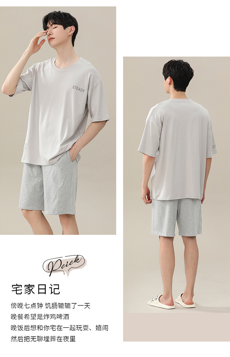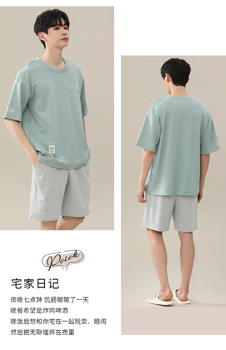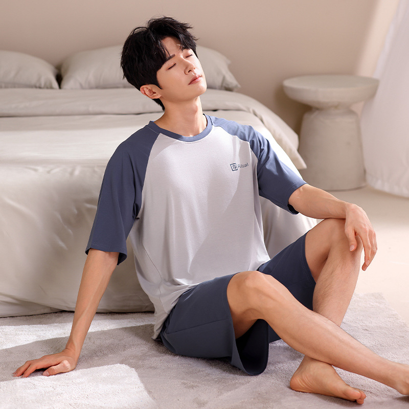 모달 남성 잠옷 여름 반팔 반바지 청소년 얇은 여름 시원한 느낌은 집 밖에서 입을 수 있습니다.