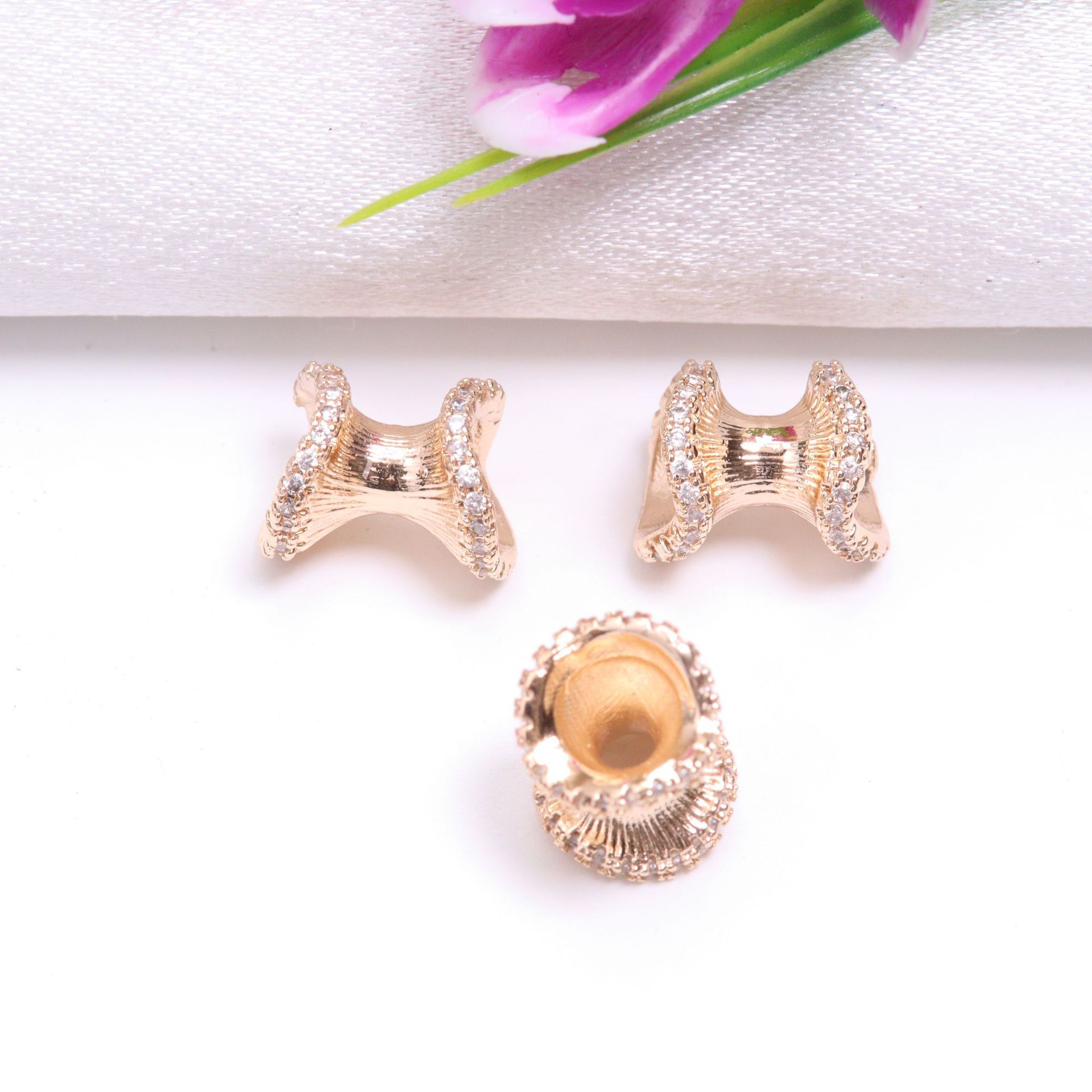 구리 도금 14K 리얼 골드 마이크로 다이아몬드 허리 드럼 스페이서 비즈 스네이크 대나무 롱 튜브 비즈 DIY 팔찌 팔찌 액세서리 재료