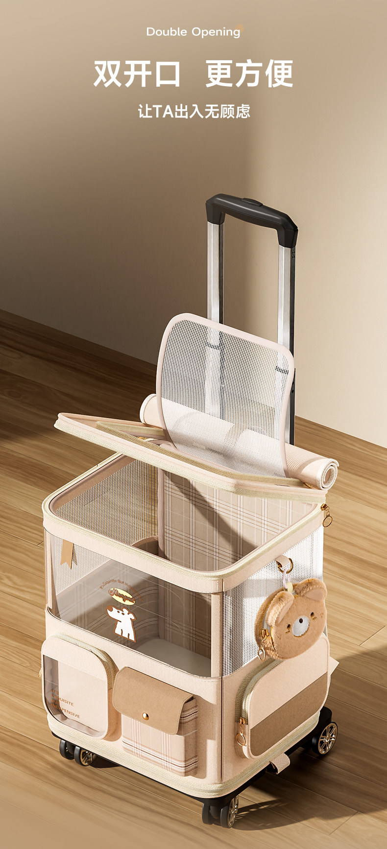 【品名】:Hoopet-pp可爱熊拉杆背包/pp配套拉杆