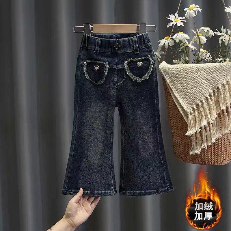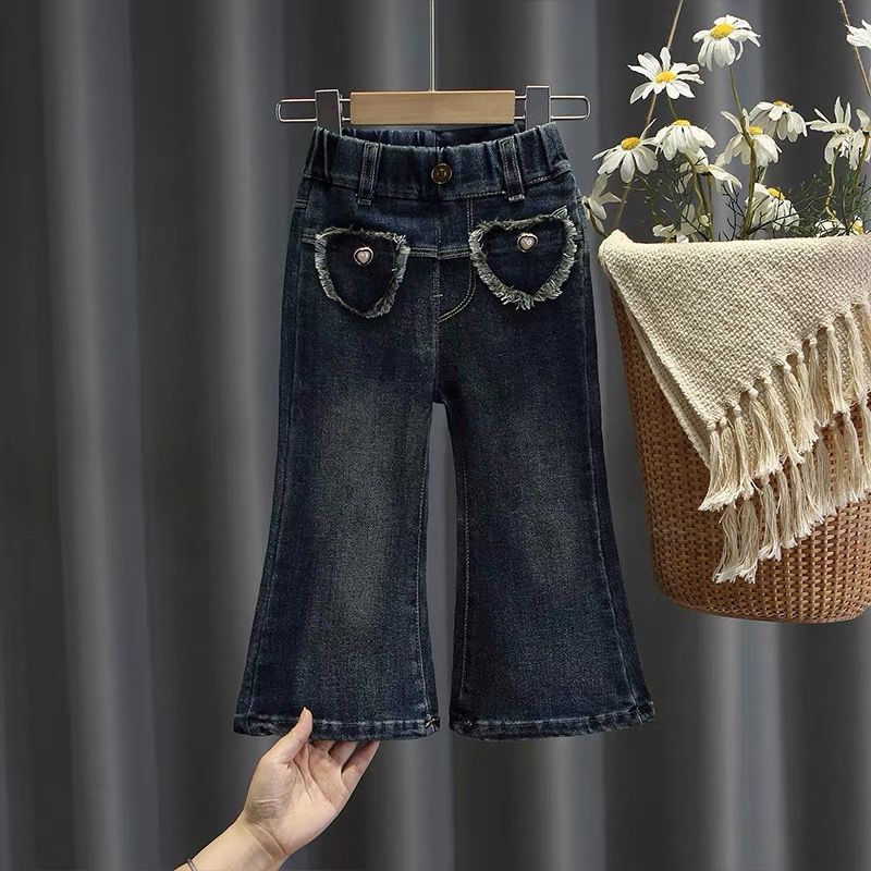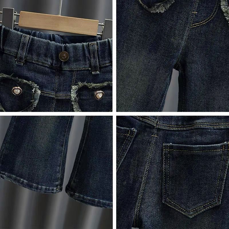 2025 어린 소녀 유행 데님 플레어 바지 가을 새로운 아동복 바지 소녀 유행 탄성 슬림 바지스토어 가기