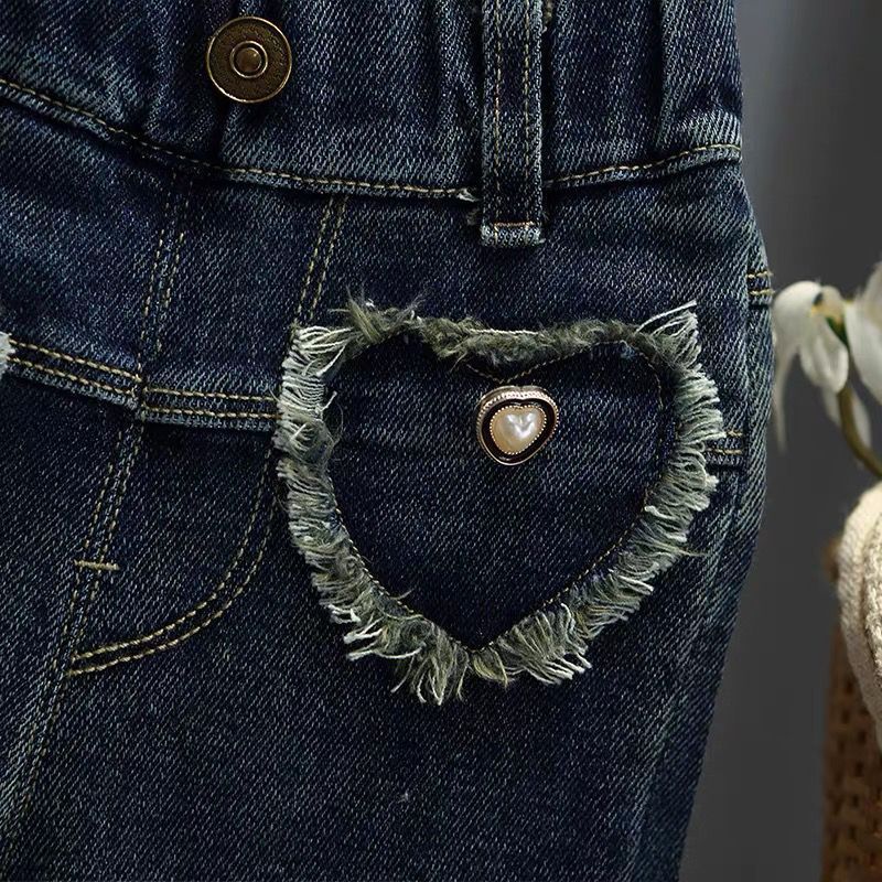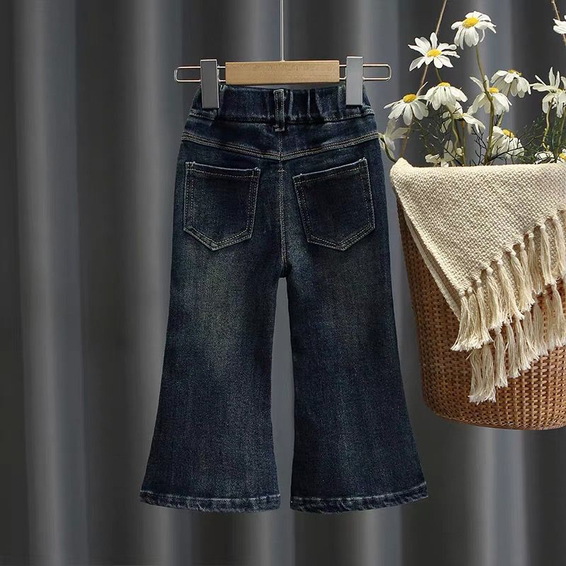 2025 어린 소녀 유행 데님 플레어 바지 가을 새로운 아동복 바지 소녀 유행 탄성 슬림 바지