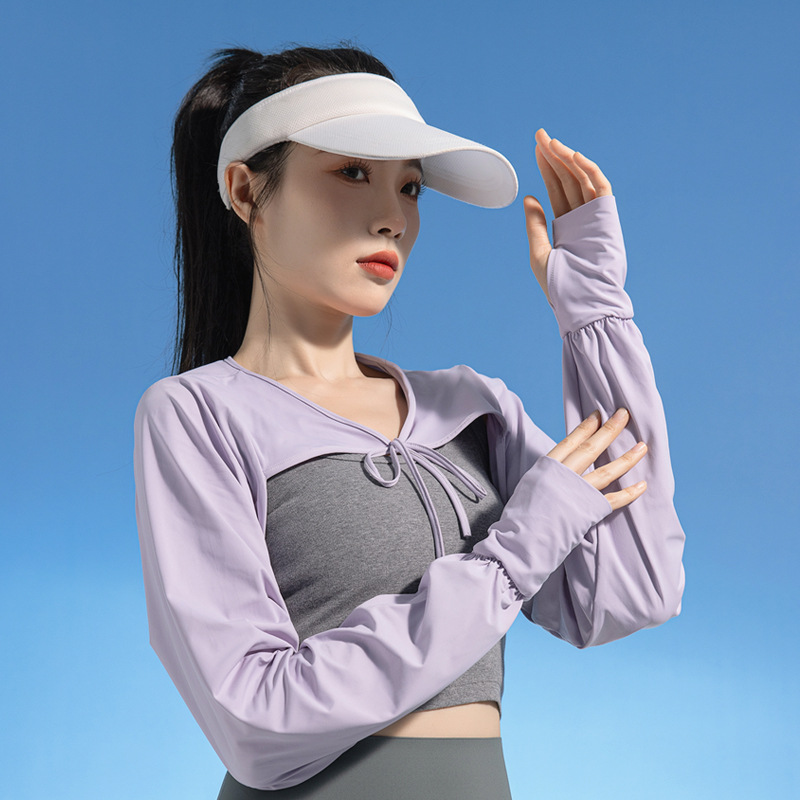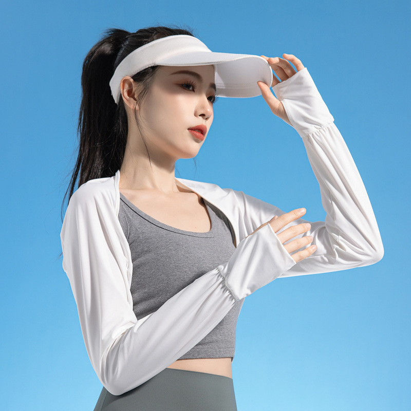 2025 여성을위한 새로운 얼음 슬리브 태양 보호 의류 여름 얇은 얼음 실크 양복 조끼 목도리 운전 짧은 태양 보호 의류 망토 블라우스스토어 가기