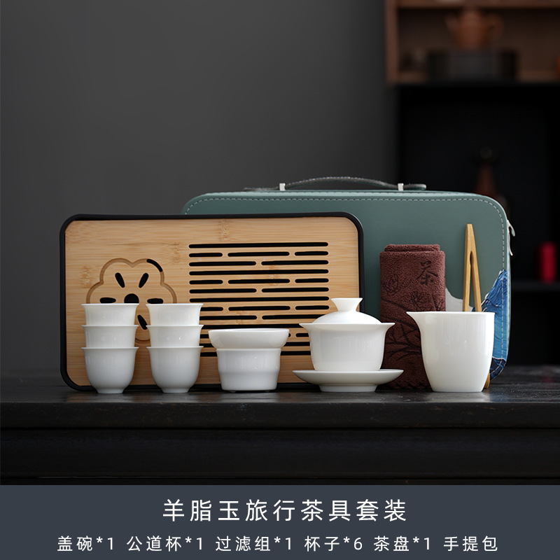 羊脂玉茶具套装旅行功夫茶具茶盘整套盖碗茶杯银行礼品logo