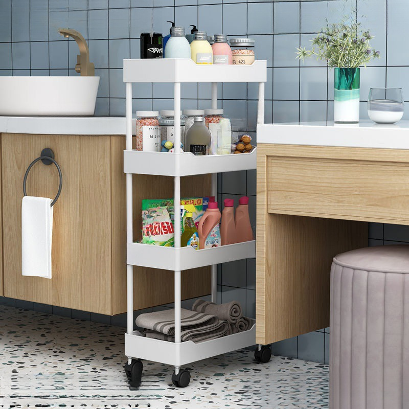 주방 갭 스토리지 랙 욕실 바닥 다층 갭 좁은 침대 옆 이동식 카트 스토리지 랙