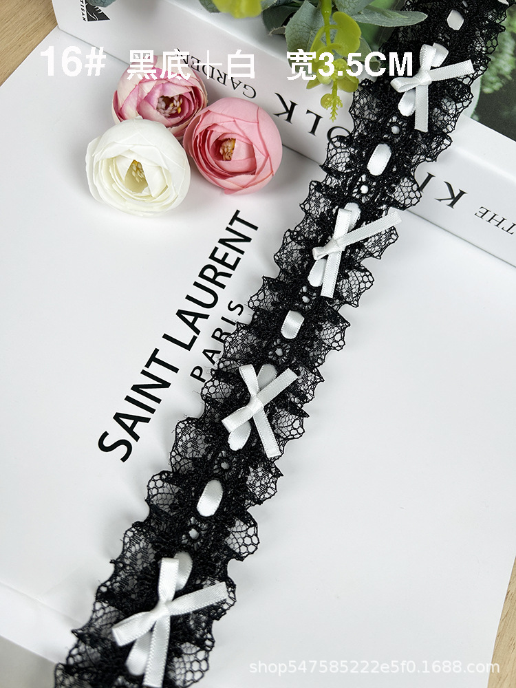 • 6 # 검정색 배경 파우더 폭 3.5cm 길이 1야드