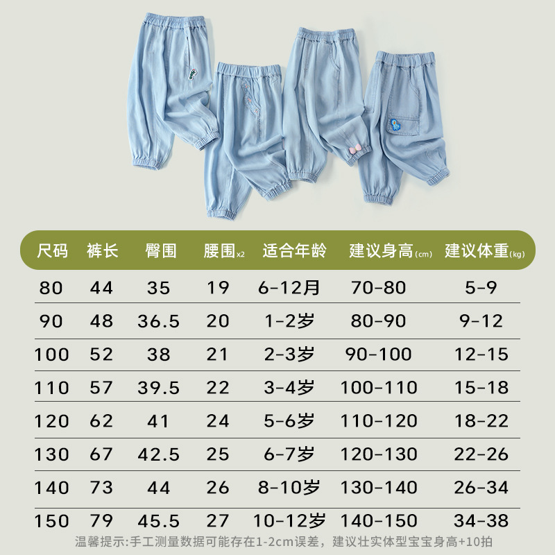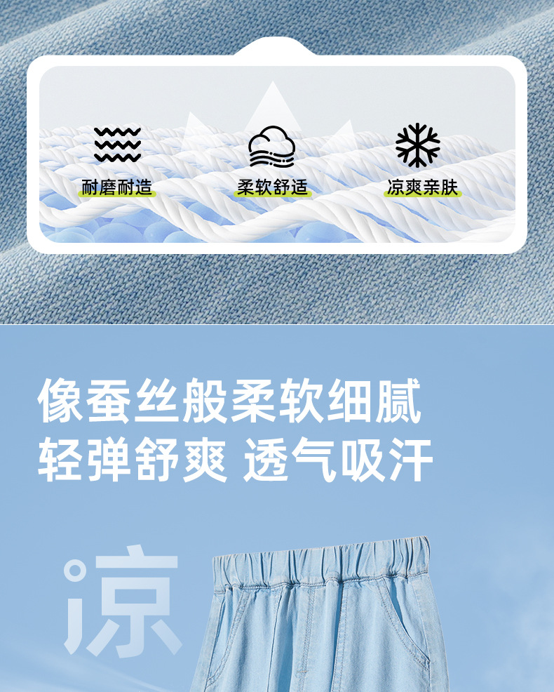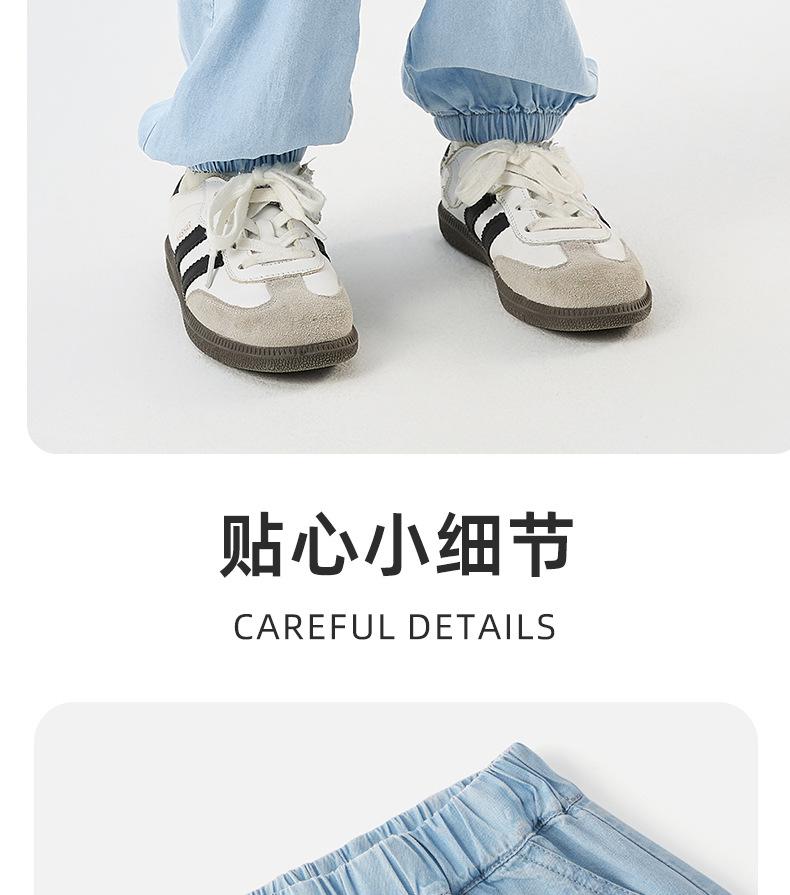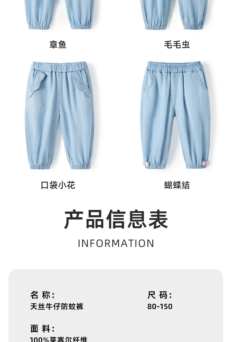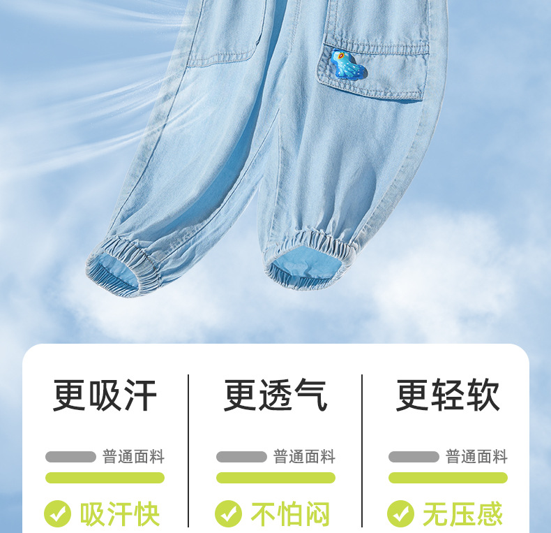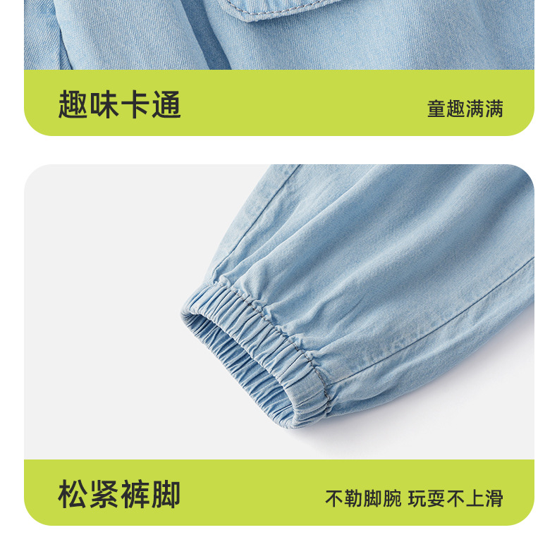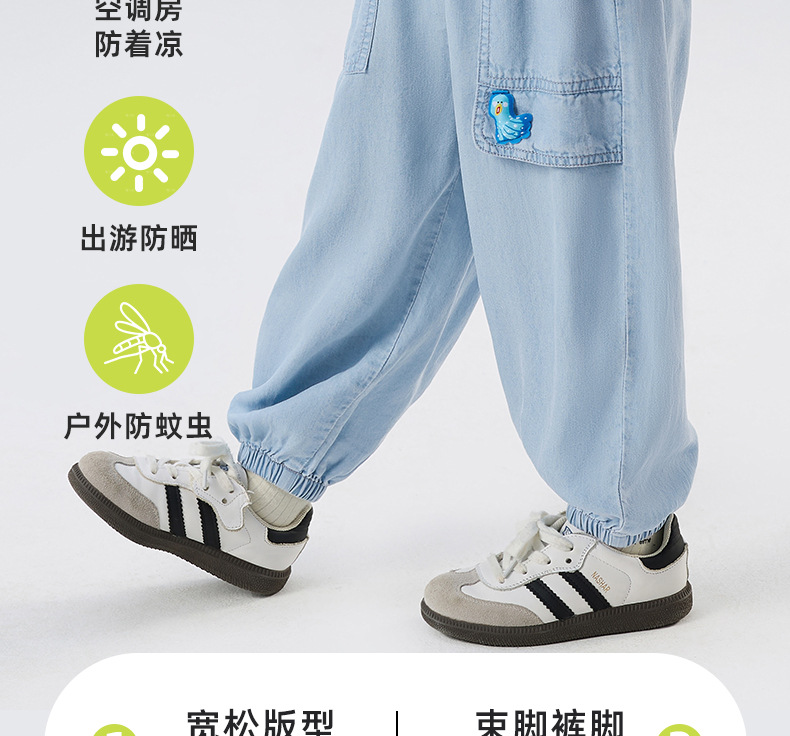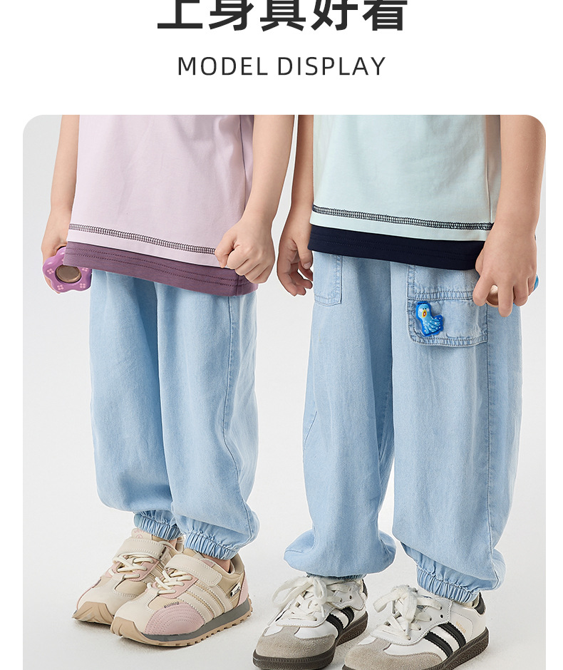 2025 새로운 여름 스포츠 청바지 작은 남성과 여성의 아기 패션 텐셀 데님 모기 방지 바지 얇은 바지스토어 가기