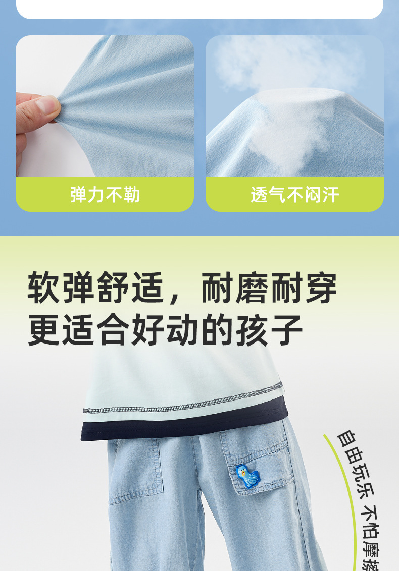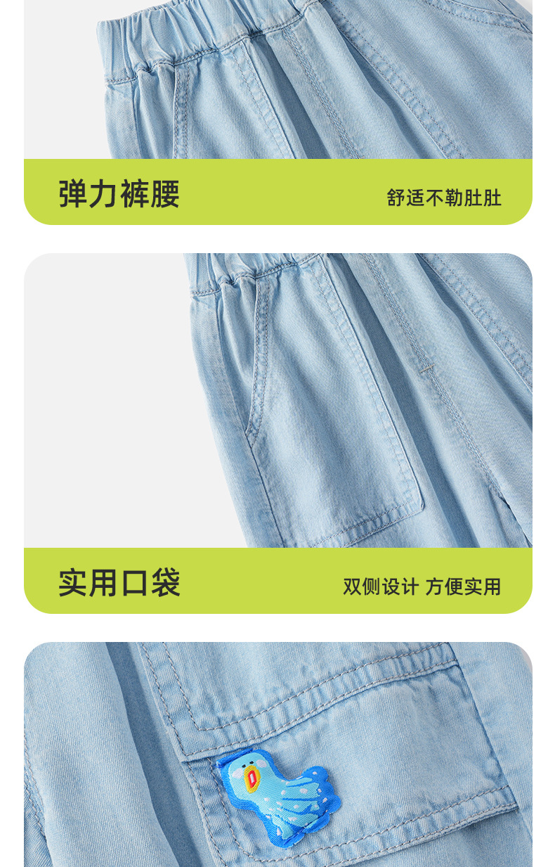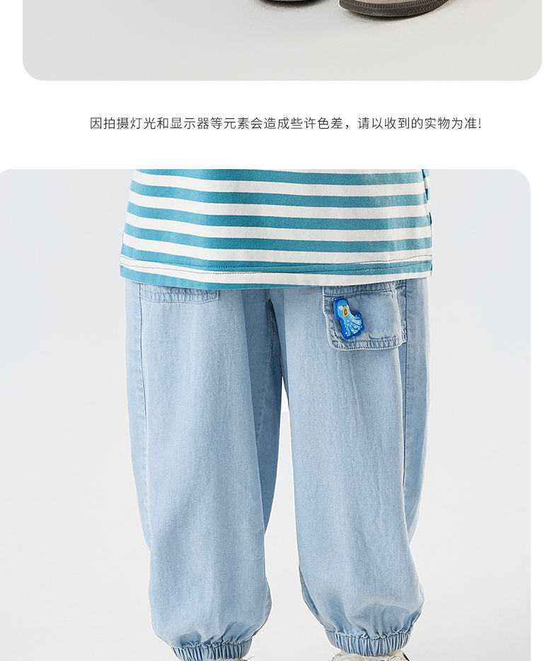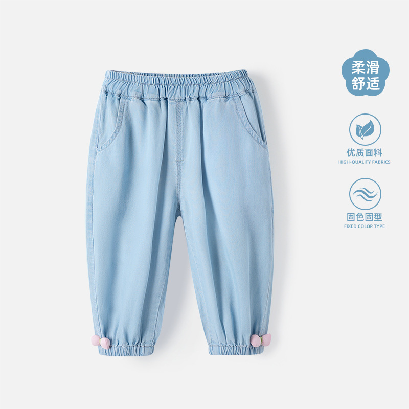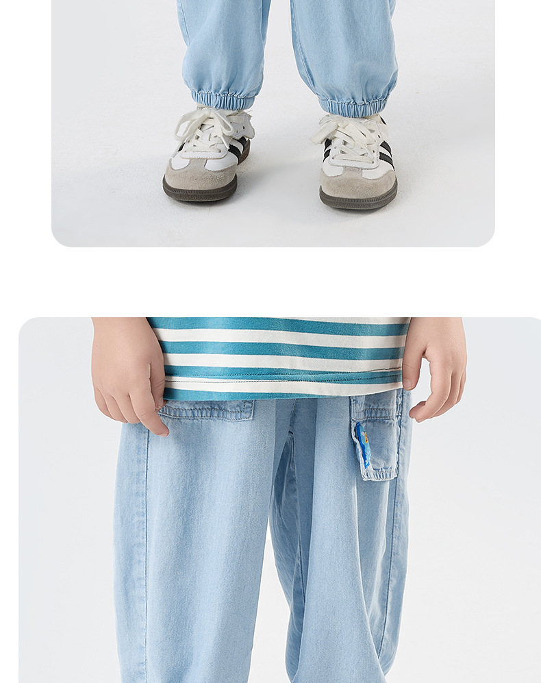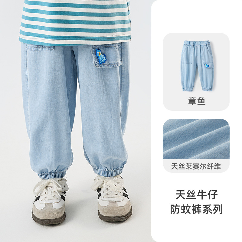 2025 새로운 여름 스포츠 청바지 작은 남성과 여성의 아기 패션 텐셀 데님 모기 방지 바지 얇은 바지