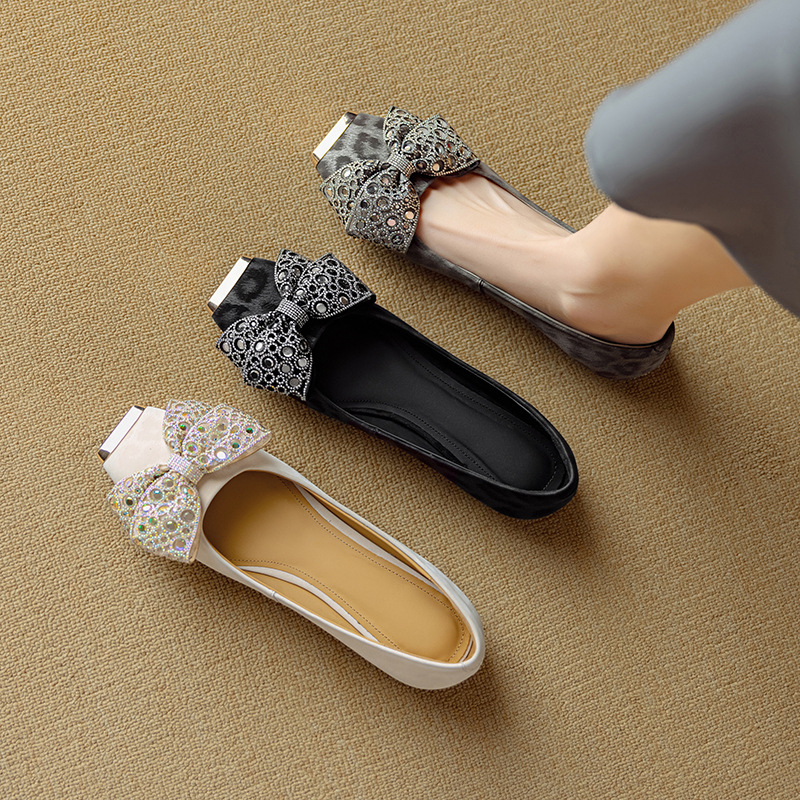 봄과 가을 양가죽 활 신발 여성용 얕은 입 회색 사각 발가락 플랫 슈즈 여성용 부드러운 밑창 편안한 스커트 슈즈스토어 가기
