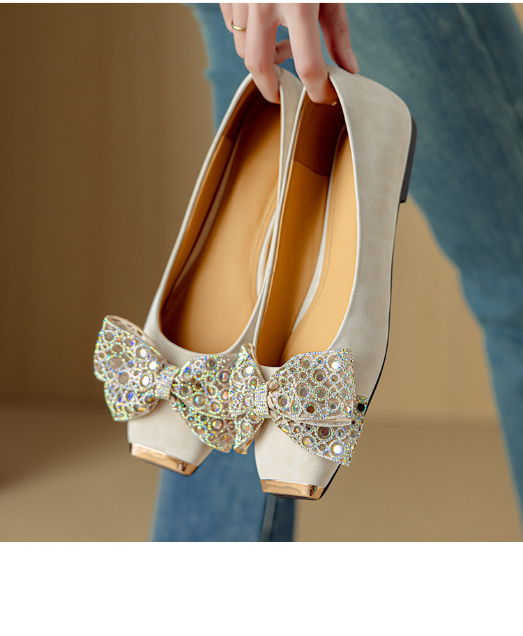 봄과 가을 양가죽 활 신발 여성용 얕은 입 회색 사각 발가락 플랫 슈즈 여성용 부드러운 밑창 편안한 스커트 슈즈