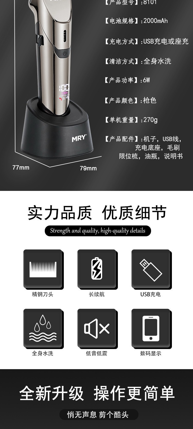 MRY 성인과 어린이를 위한 인기 있는 국경 간 전기 이발기 가정용 전기 이발기 충전식 방수 면도기스토어 가기