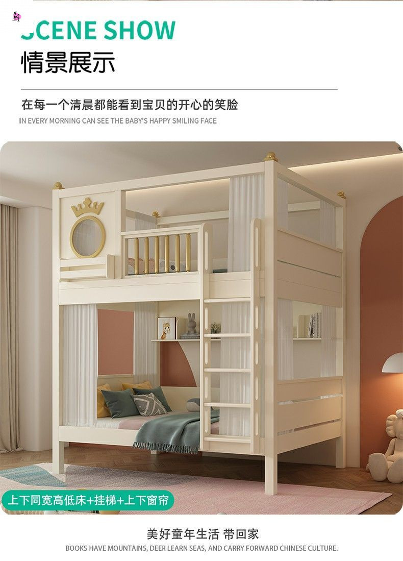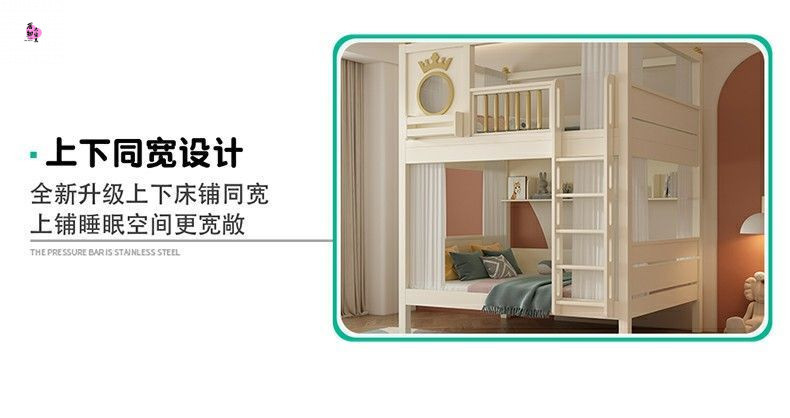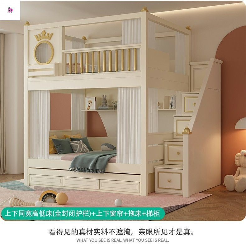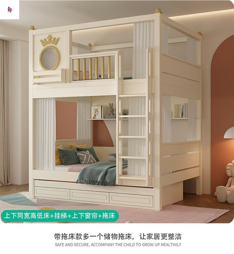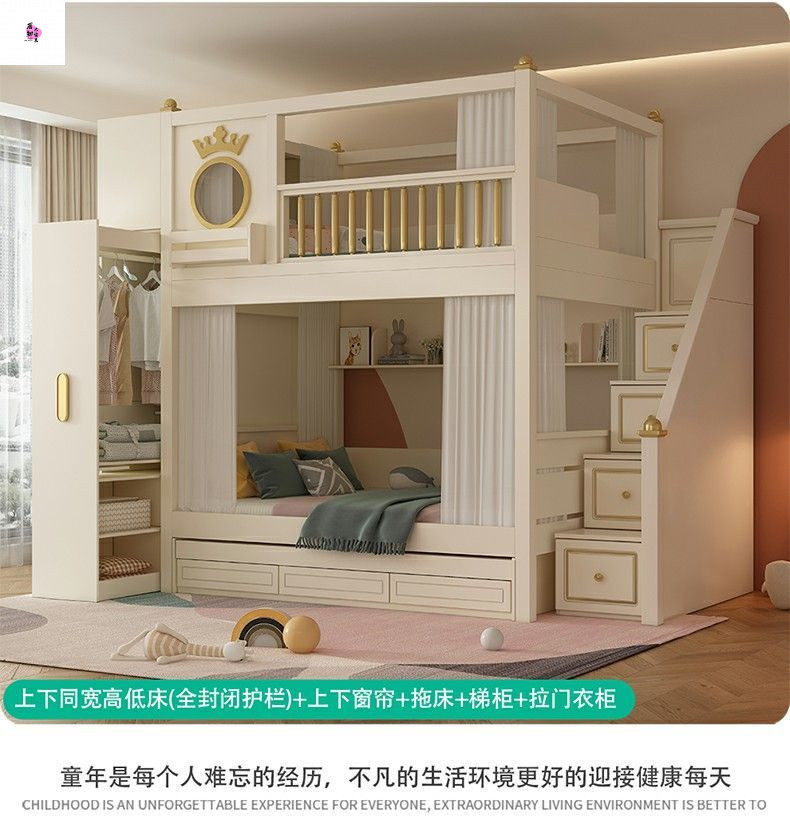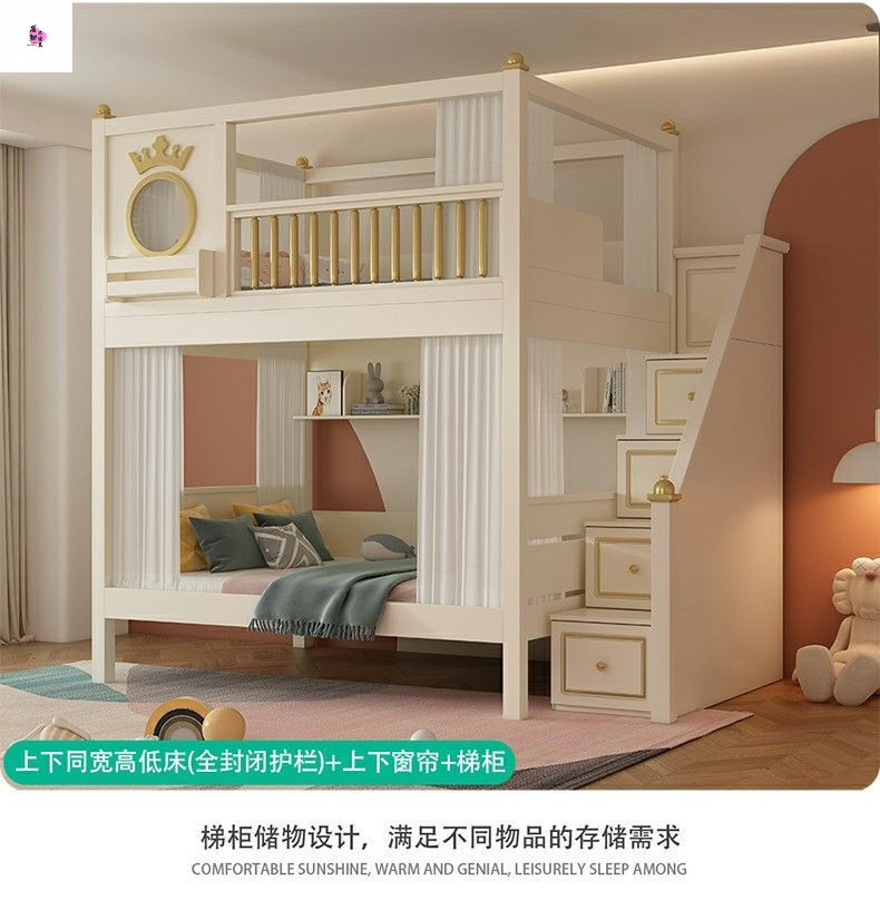 상하 침대가 동일한 너비의 어린이용 이층침대, 소형 이층침대, 이층침대, 하단 이층침대, 높은 가드레일이 있는 이층침대
