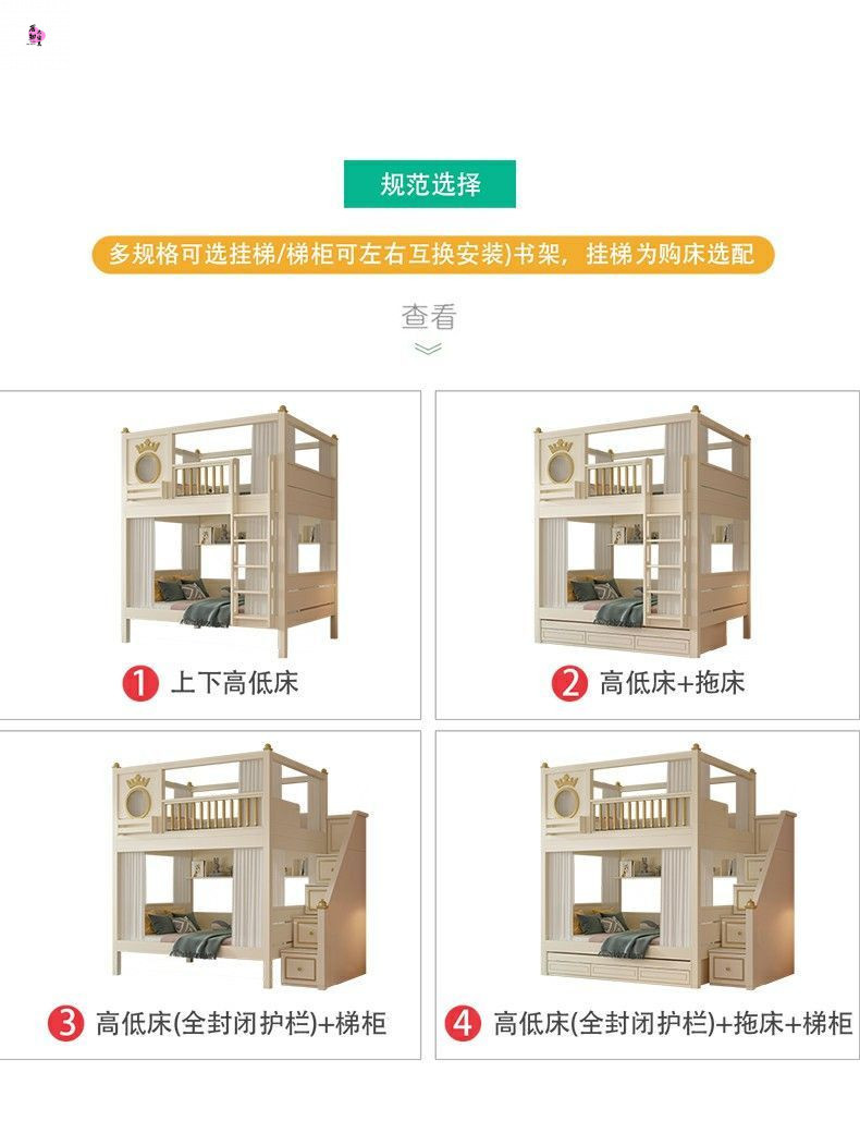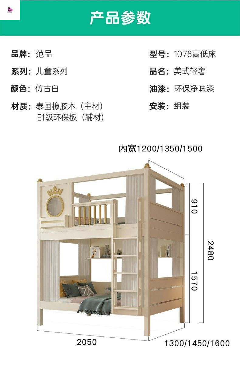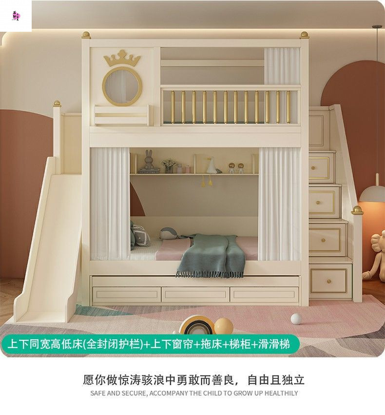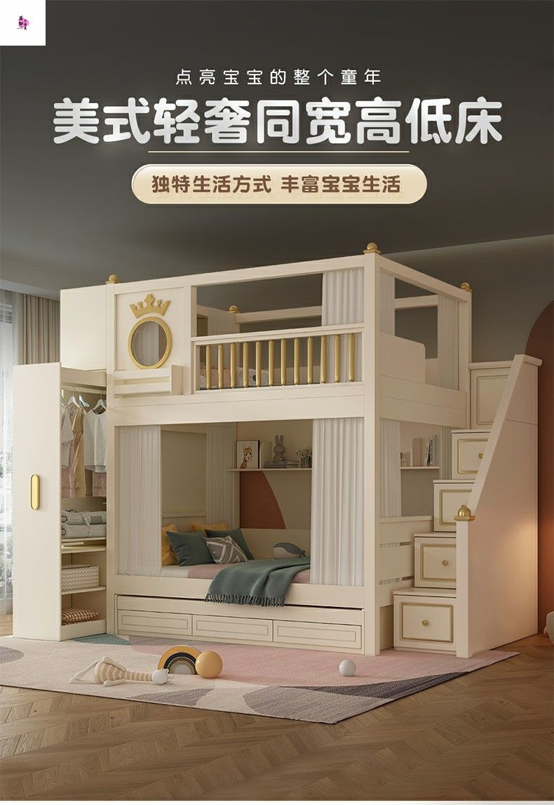 상하 침대가 동일한 너비의 어린이용 이층침대, 소형 이층침대, 이층침대, 하단 이층침대, 높은 가드레일이 있는 이층침대
