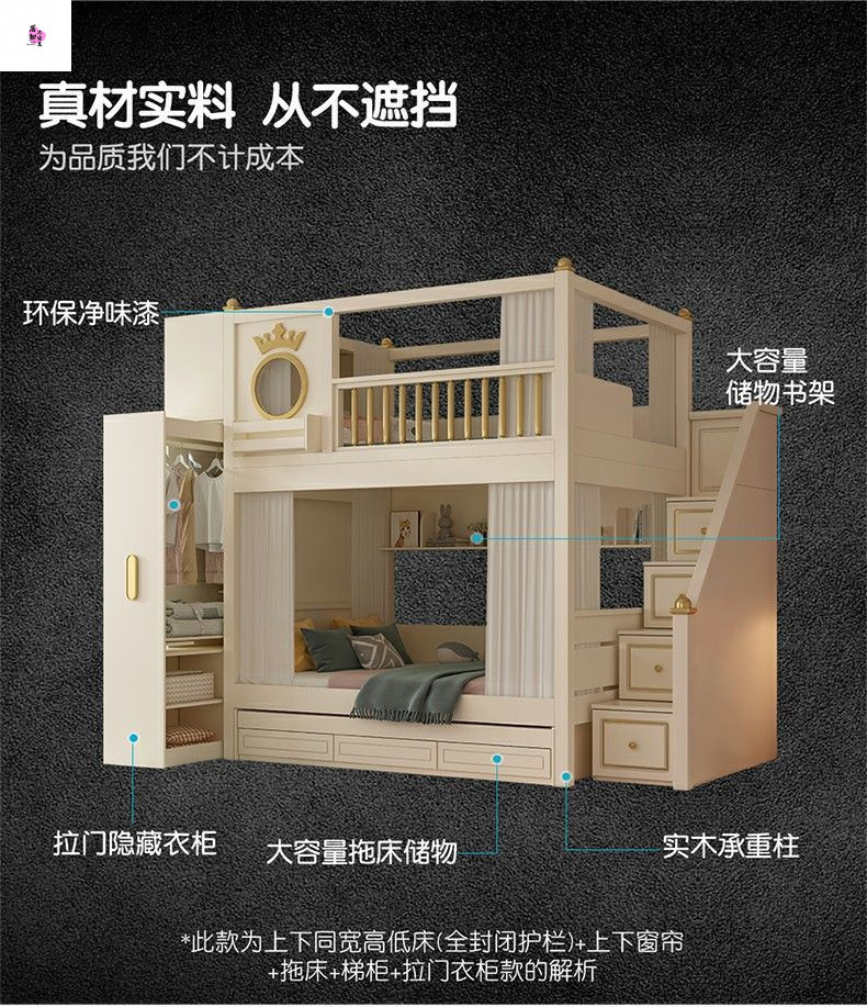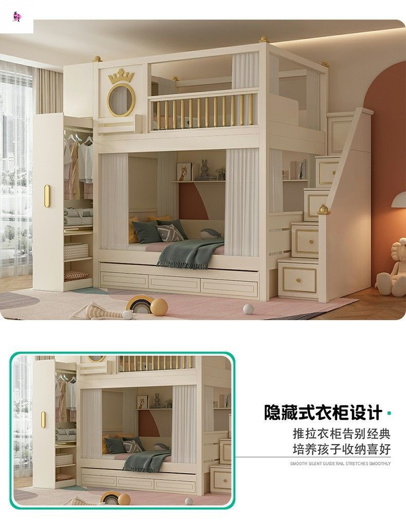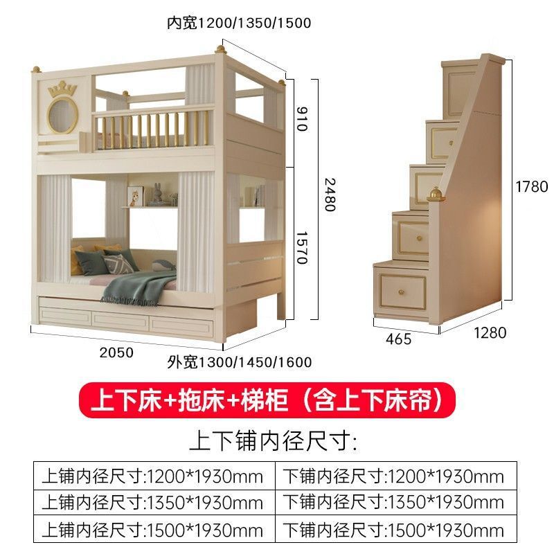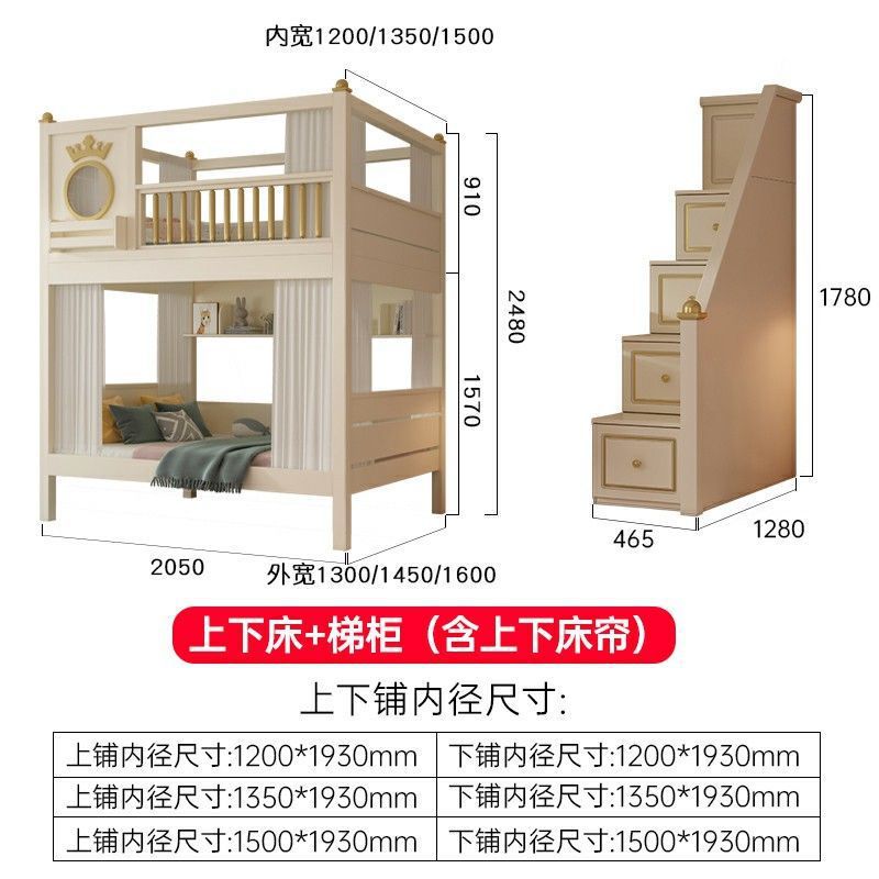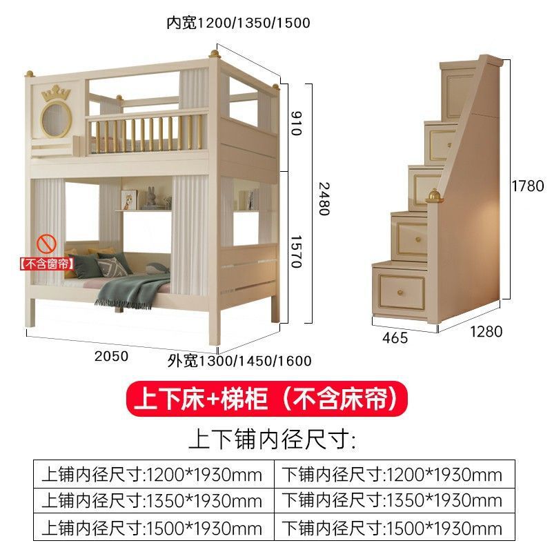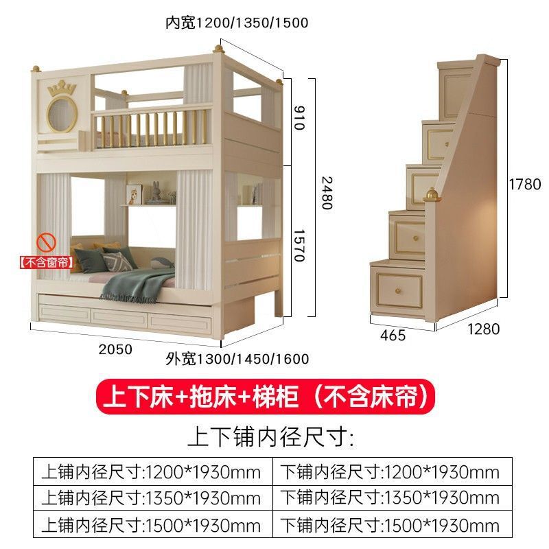 • 이층침대 + 책장 + 3단 서랍형 침대 (상하 6면 커튼 포함)