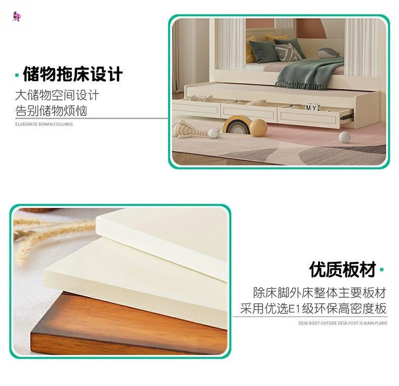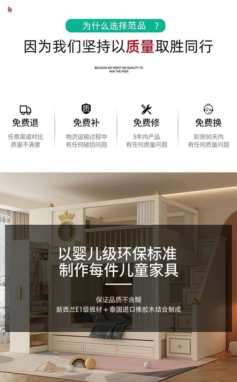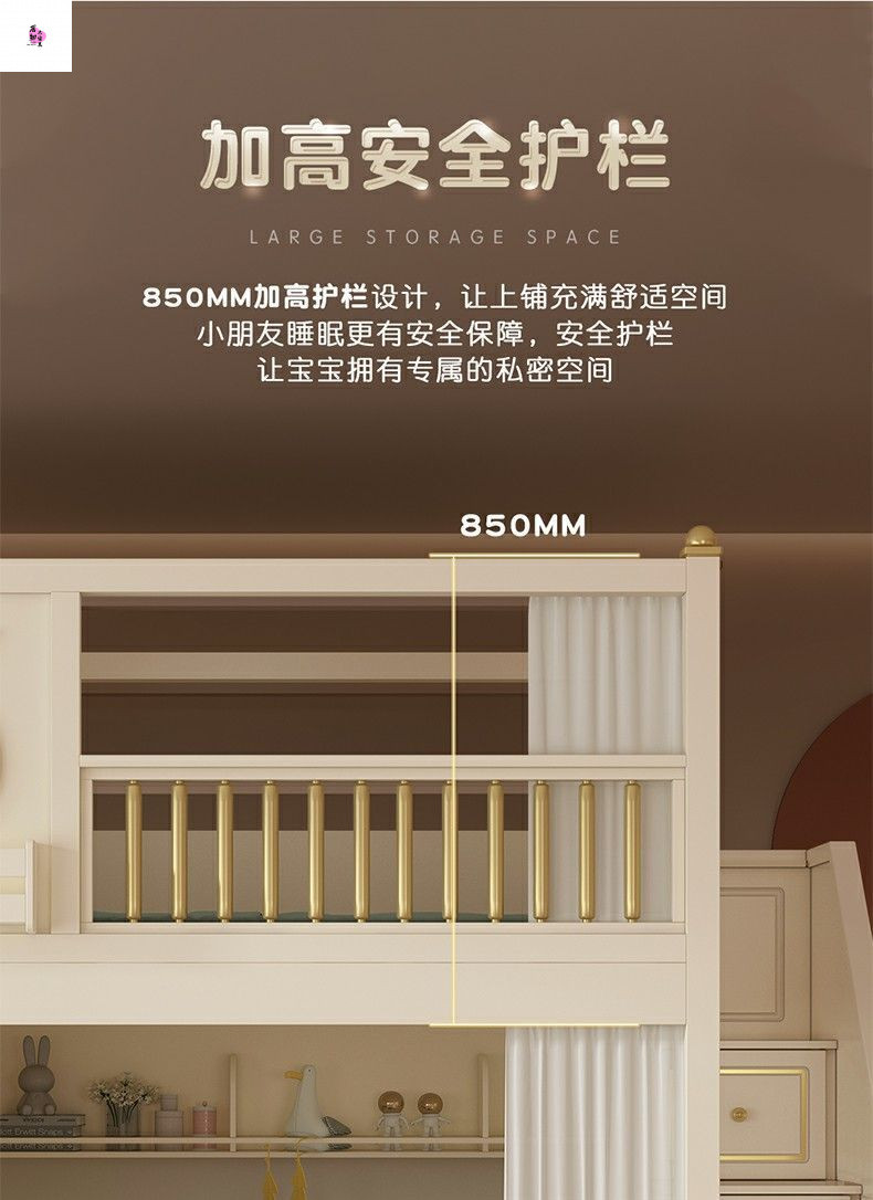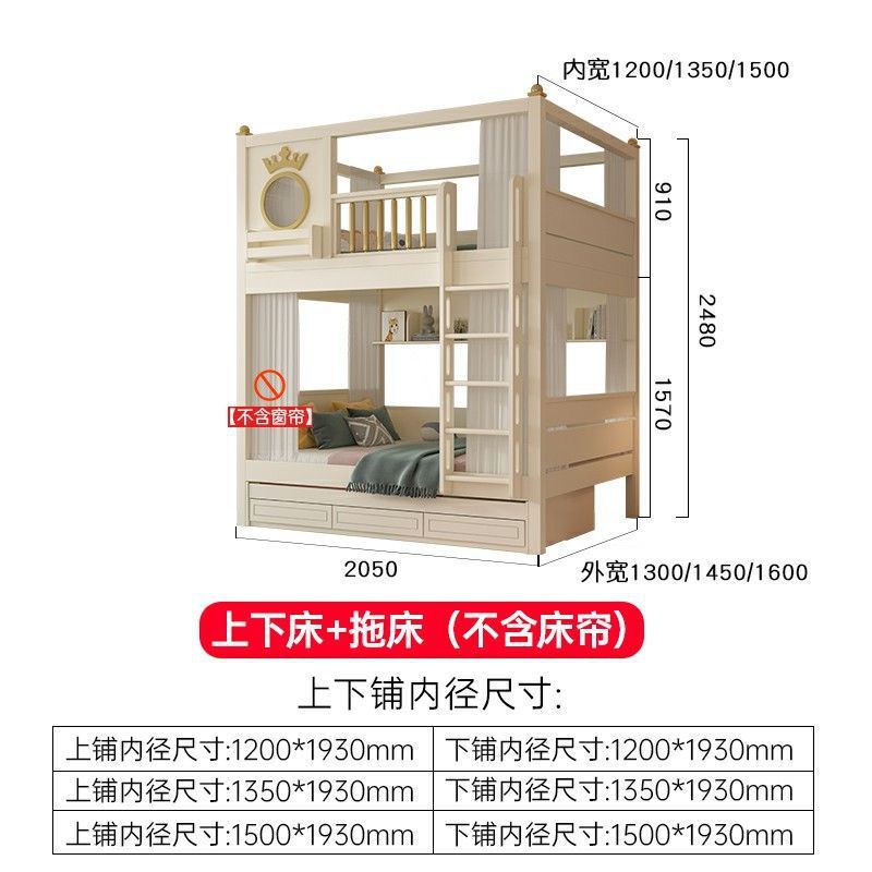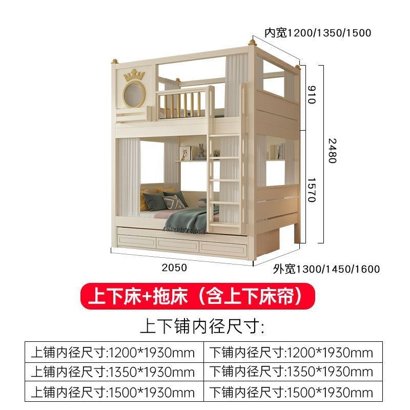 • 이층침대 + 책장 + 3단 서랍형 침대 (상하 6면 커튼 포함)