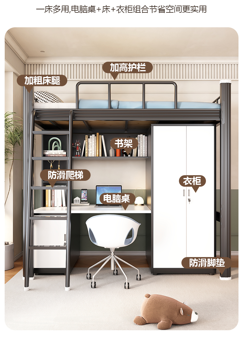 도매 아파트 침대와 책상 조합 침대 대학생 기숙사 침대 철제 높은 침대와 빈 높이스토어 가기