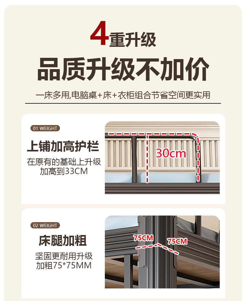 도매 아파트 침대와 책상 조합 침대 대학생 기숙사 침대 철제 높은 침대와 빈 높이