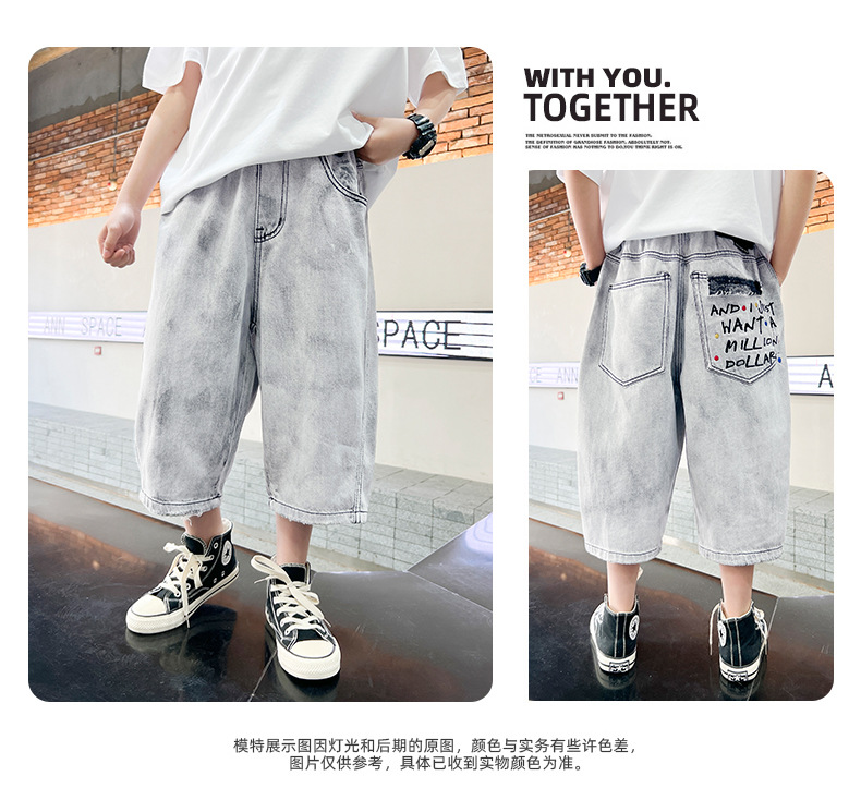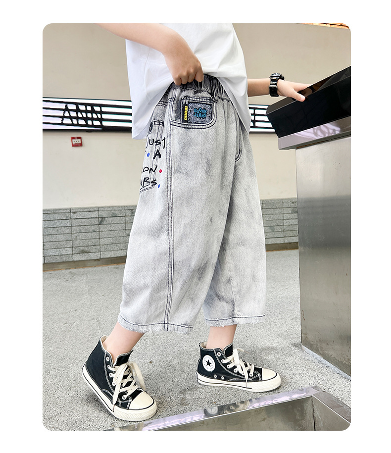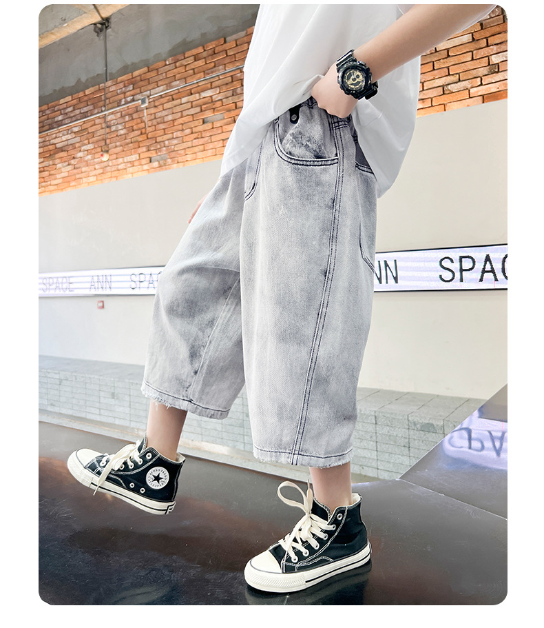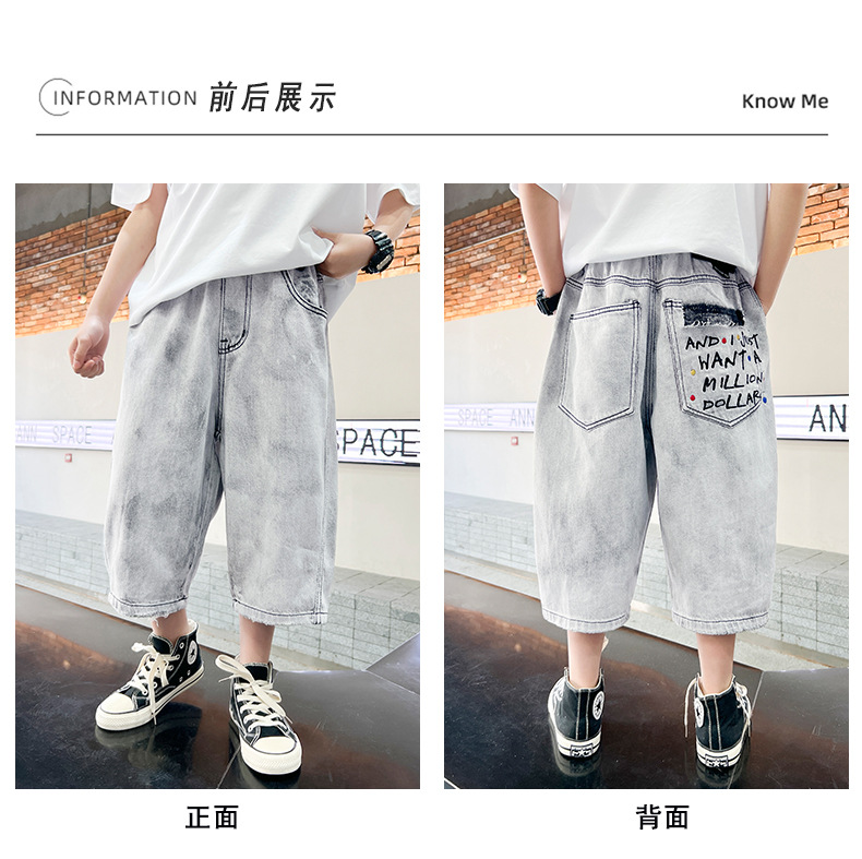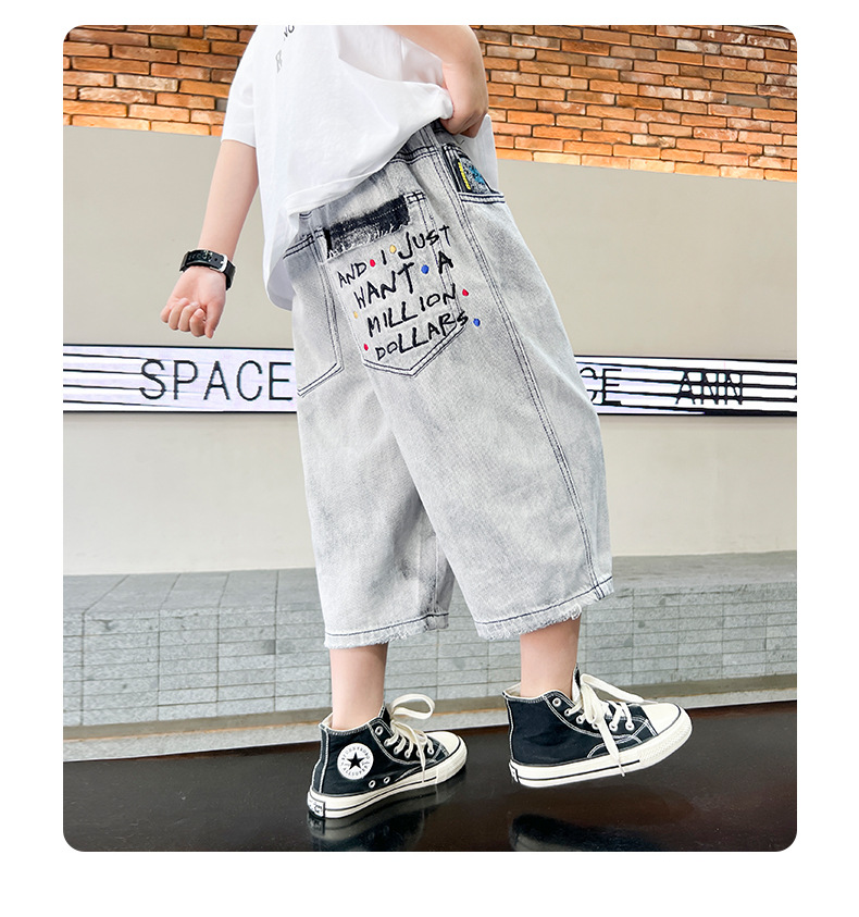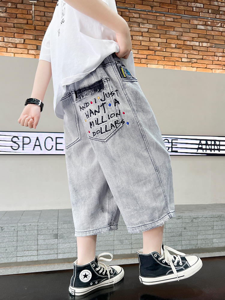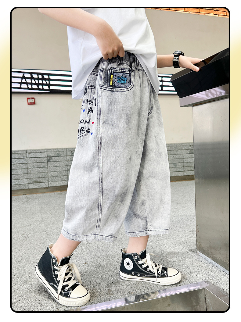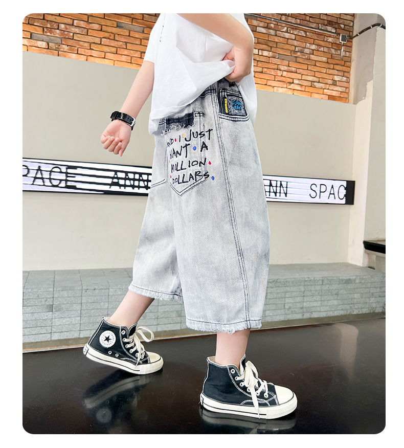 어린이 소년 바지 데님 반바지 여름 얇은 2025 새로운 도착 중대형 소년 여름 잘린 트렌디 바지스토어 가기