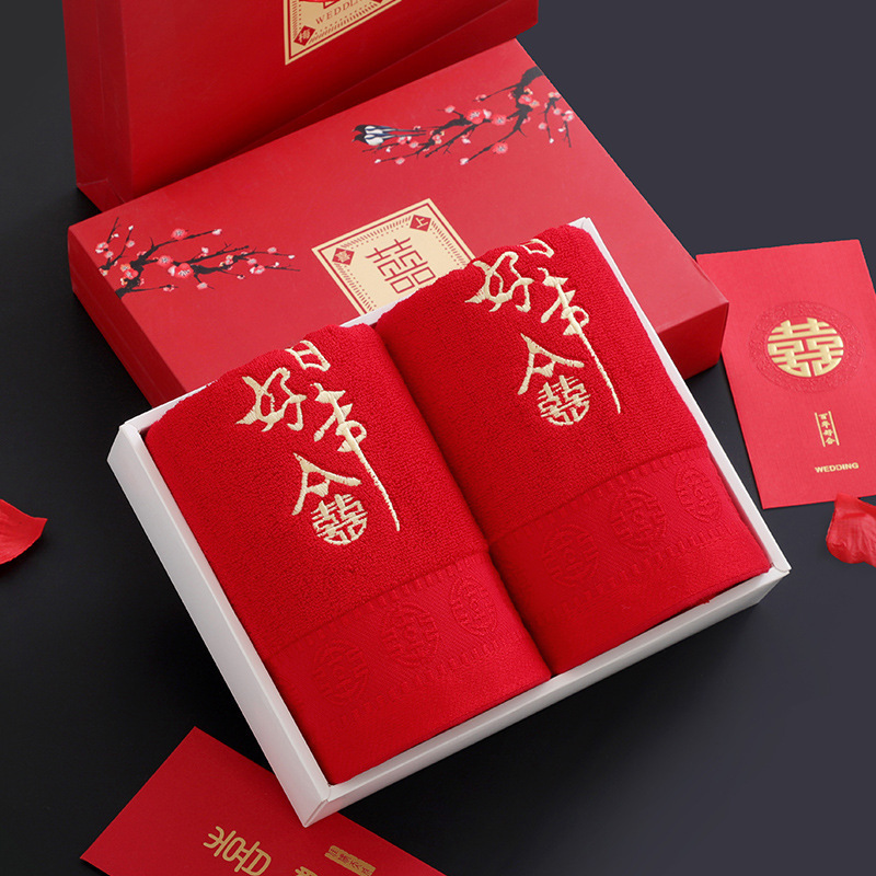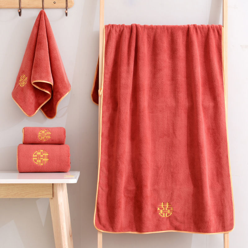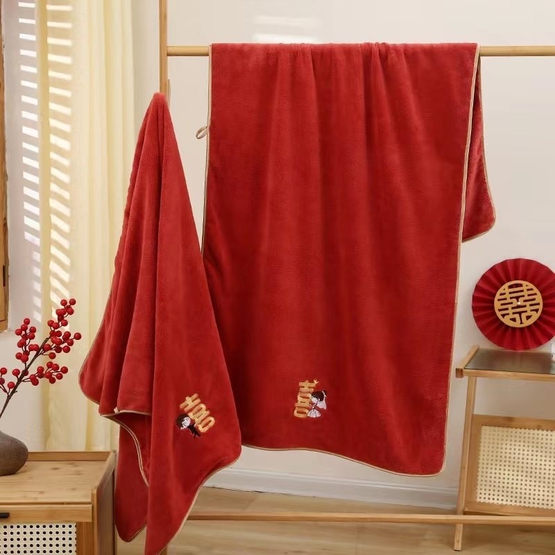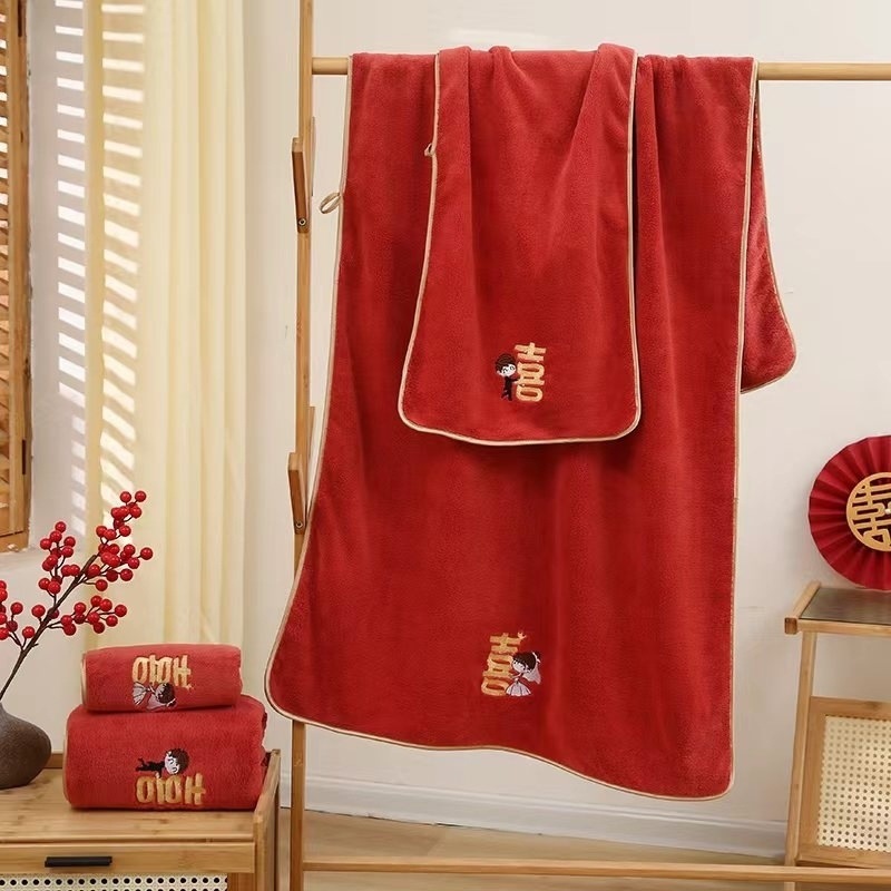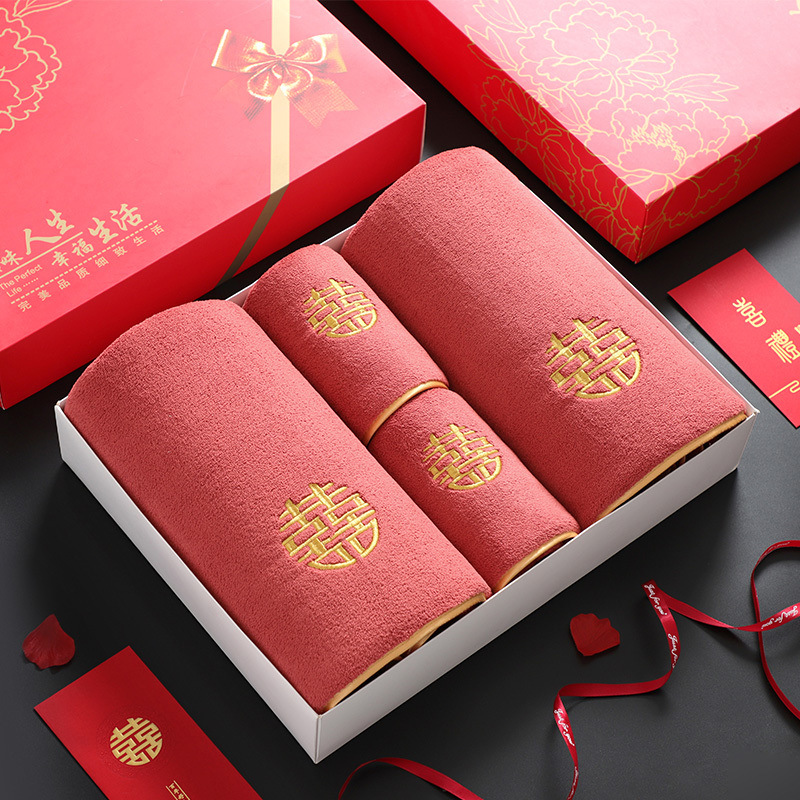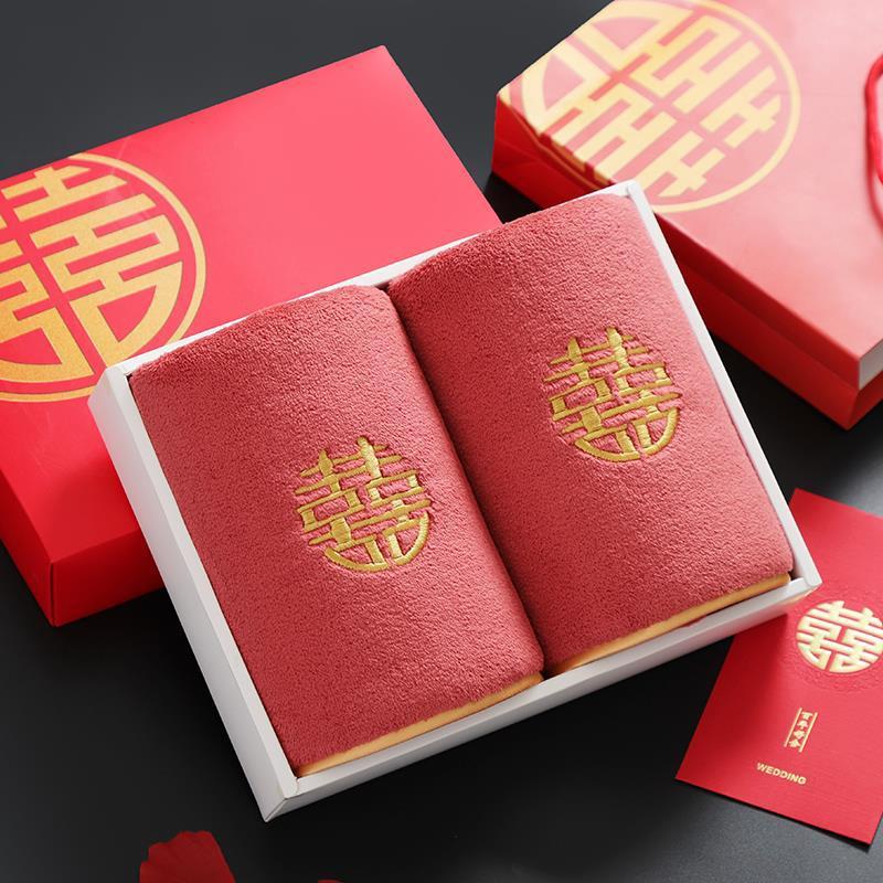 목욕 수건 수건 세트 선물 상자 결혼식 비 퇴색 목욕 타월 산호 양털 결혼식 커플 빨간 수건 히파 제조 업체스토어 가기