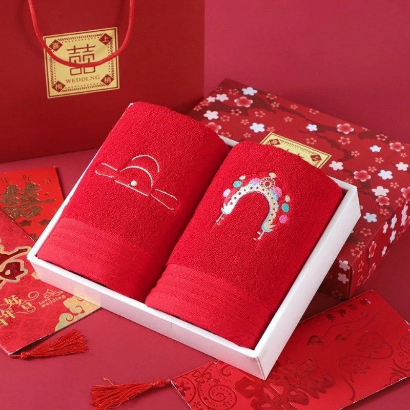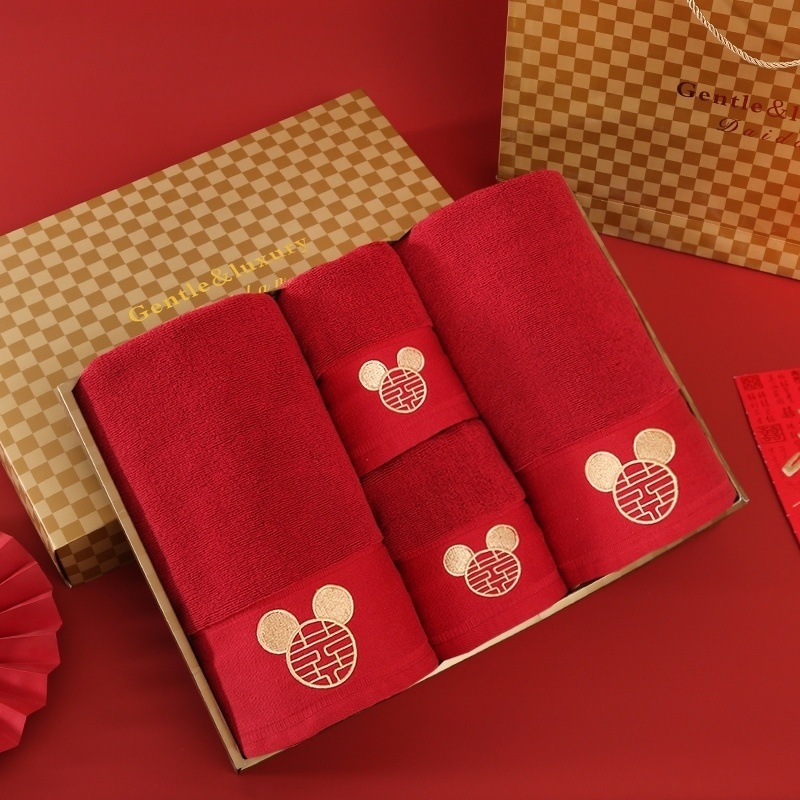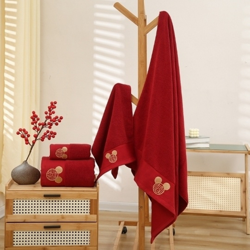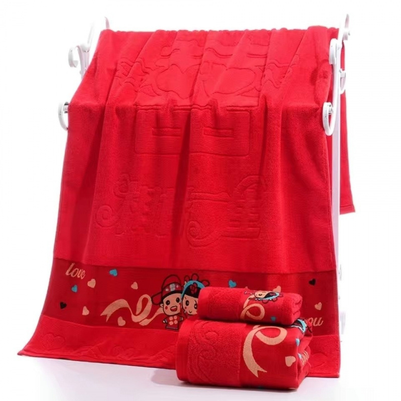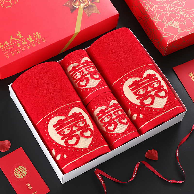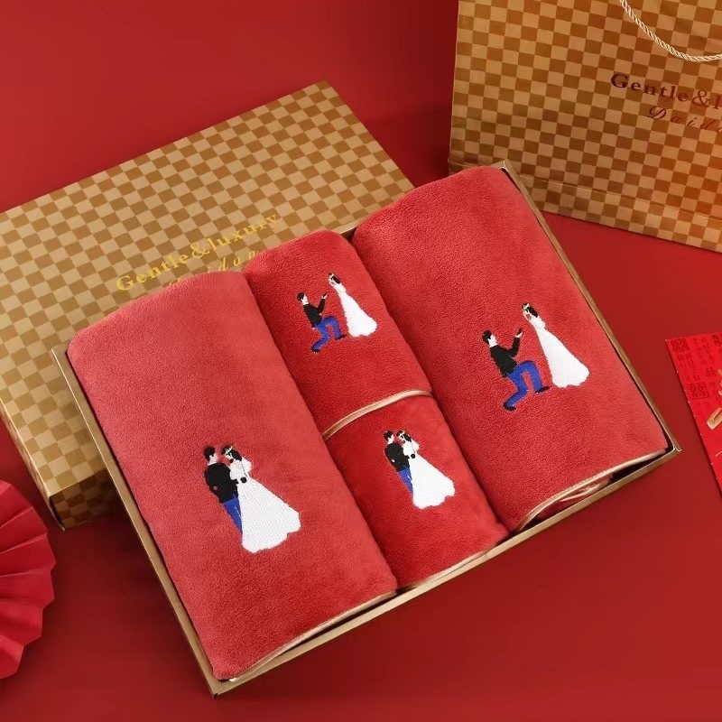 목욕 수건 수건 세트 선물 상자 결혼식 비 퇴색 목욕 타월 산호 양털 결혼식 커플 빨간 수건 히파 제조 업체스토어 가기