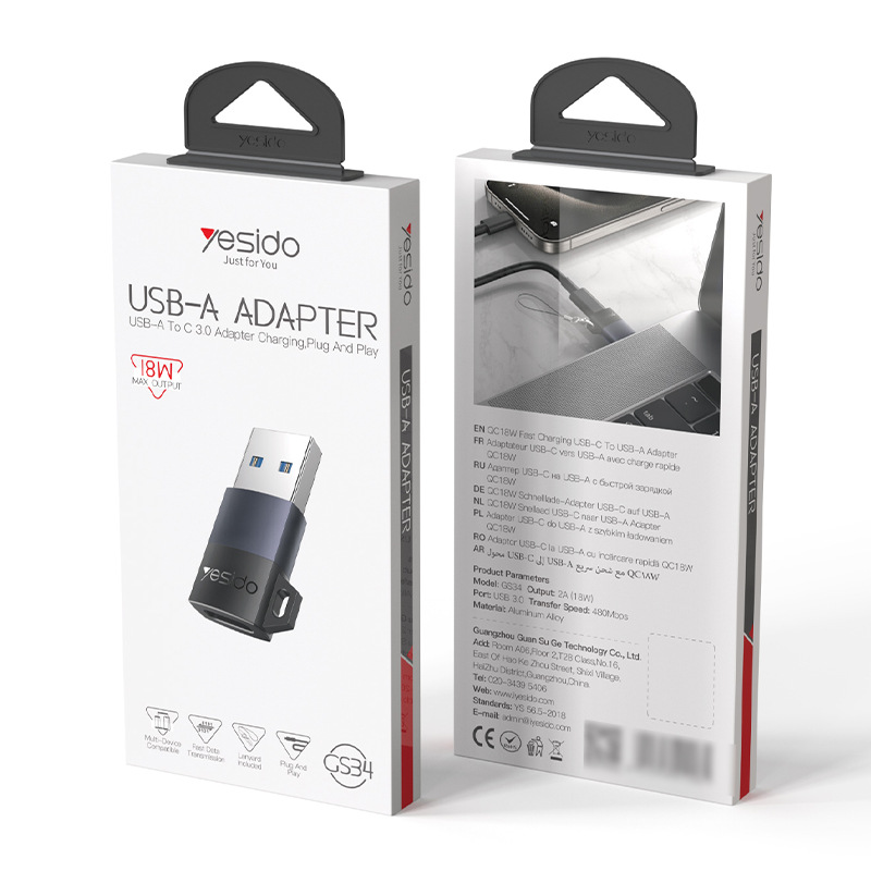Yesido 인터페이스 어댑터 국경 간 배송 유형-c-usb 어댑터 알루미늄 합금 otg 휴대 전화 어댑터스토어 가기
